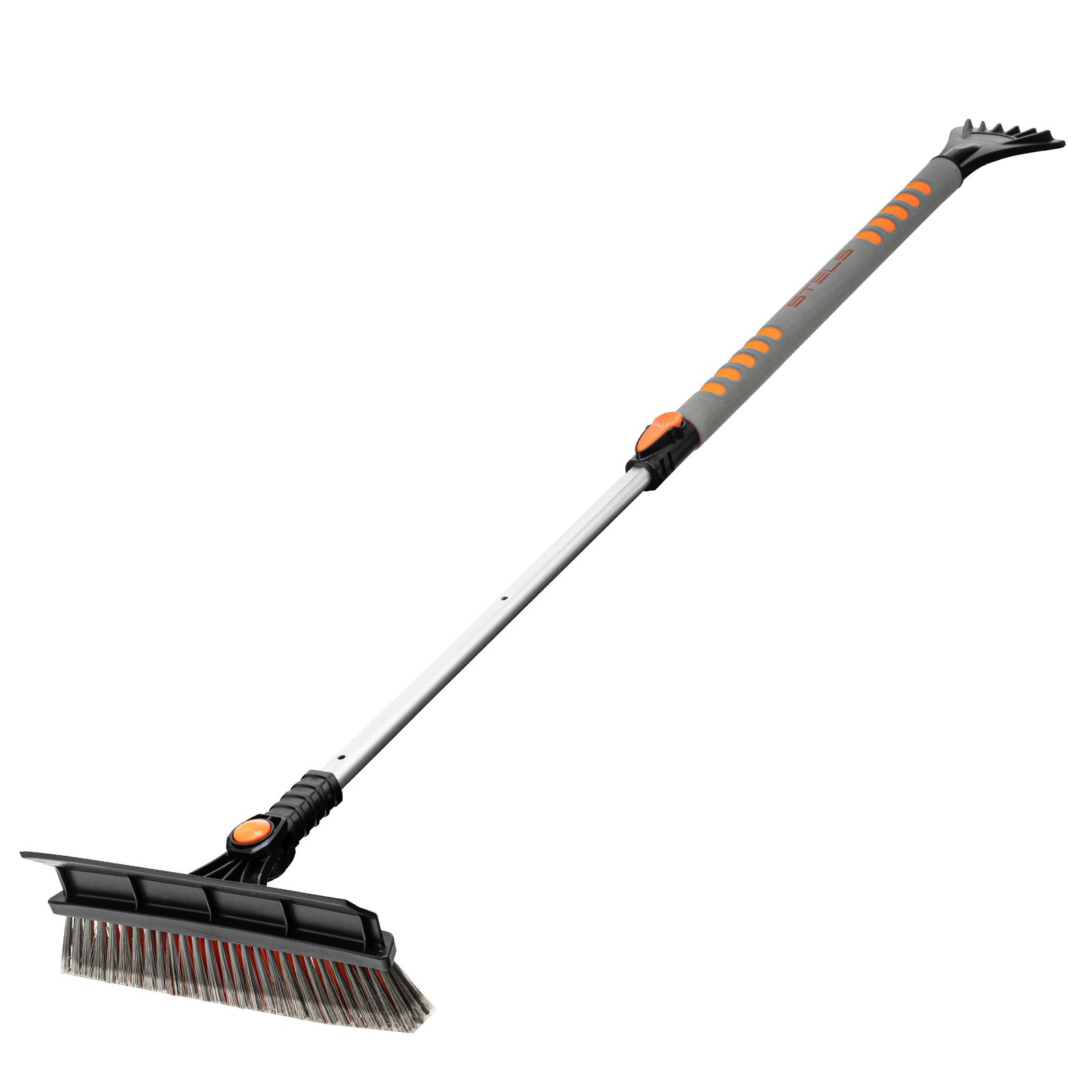 Телескопическая щетка-сметка для снега со скребком Stels 55301, длину которой можно увеличить с 900 до 1300 мм, помогает быстро очистить автомобиль от снега и наледи. Раздвижная рукоятка облегчает чистку капота и крыши. Щетка будет полезна автолюбителям.