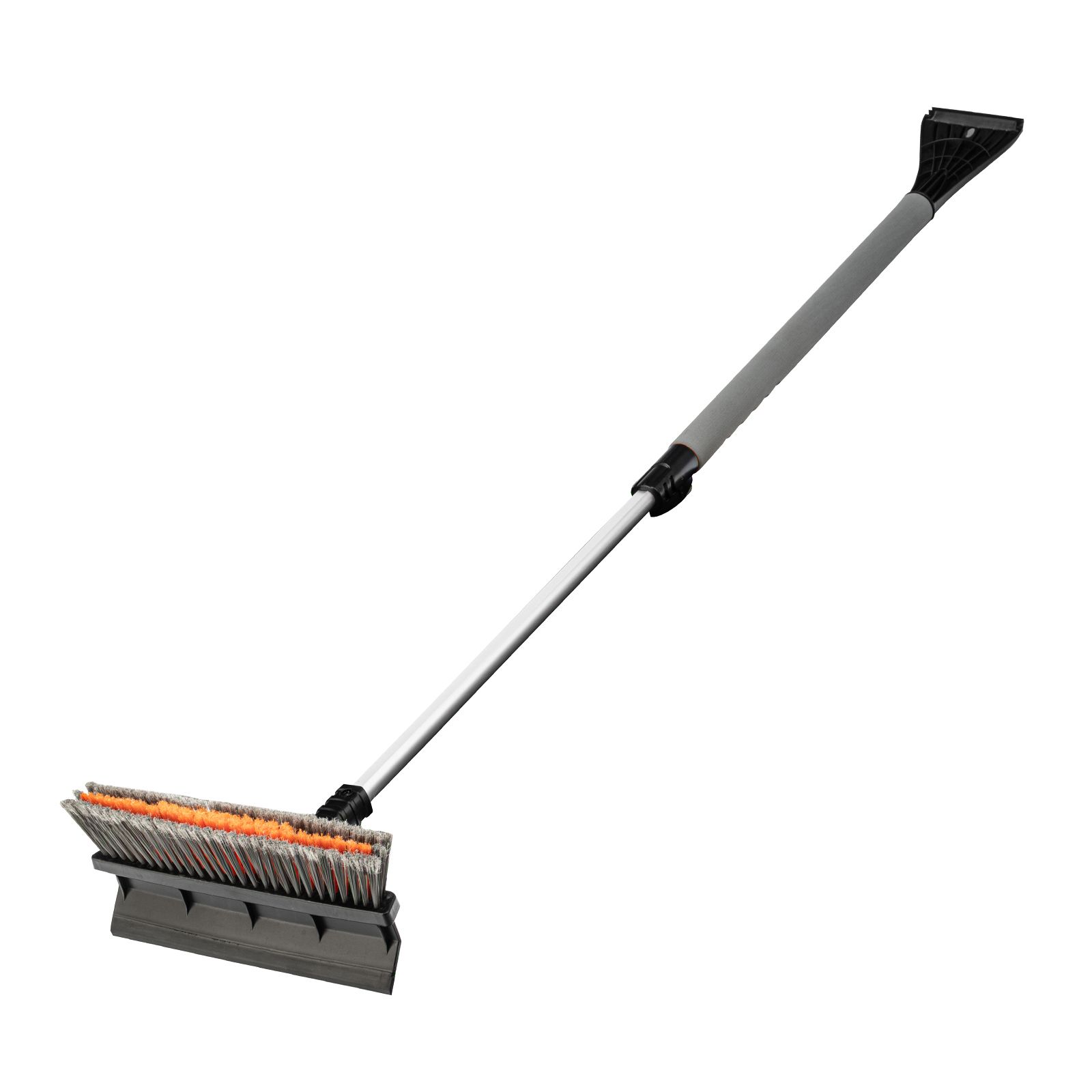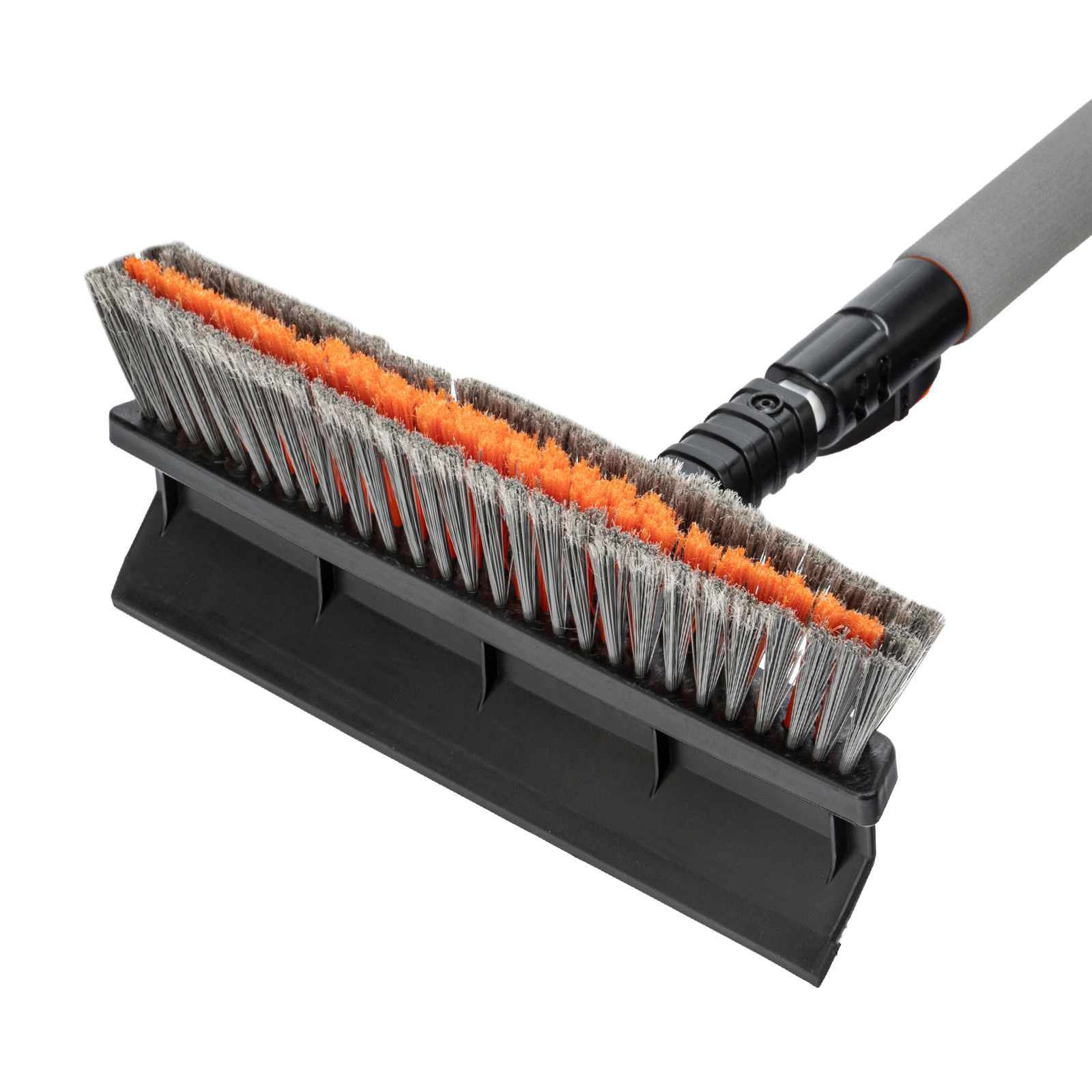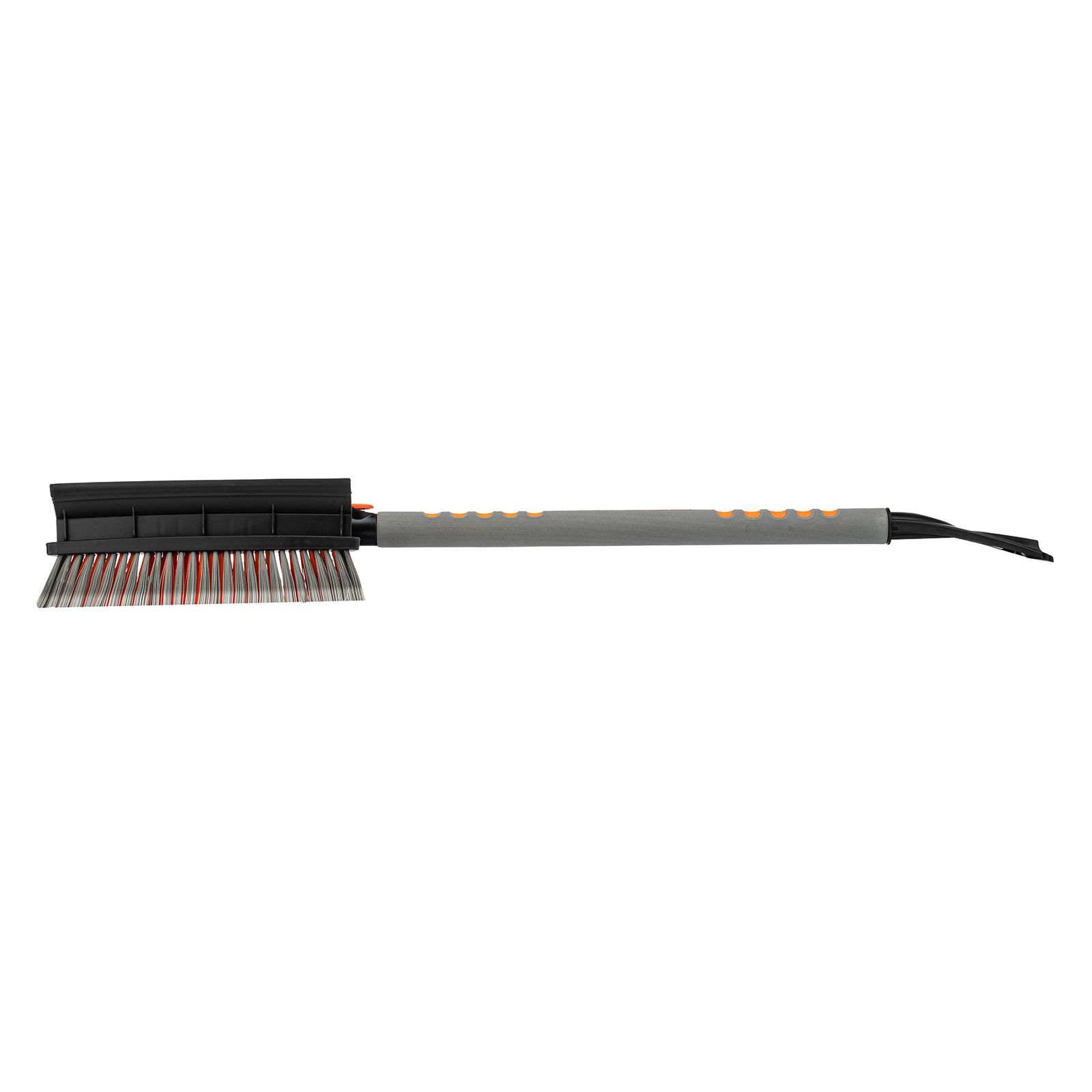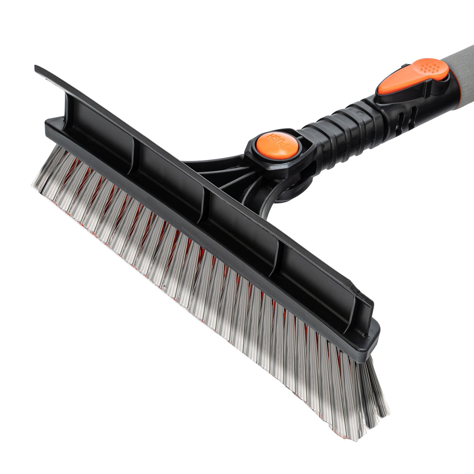 - Щетка-скребок имеет плотную щетину, распушенную на концах, поэтому эффективно убирает слой снега, не царапая поверхность кузова.