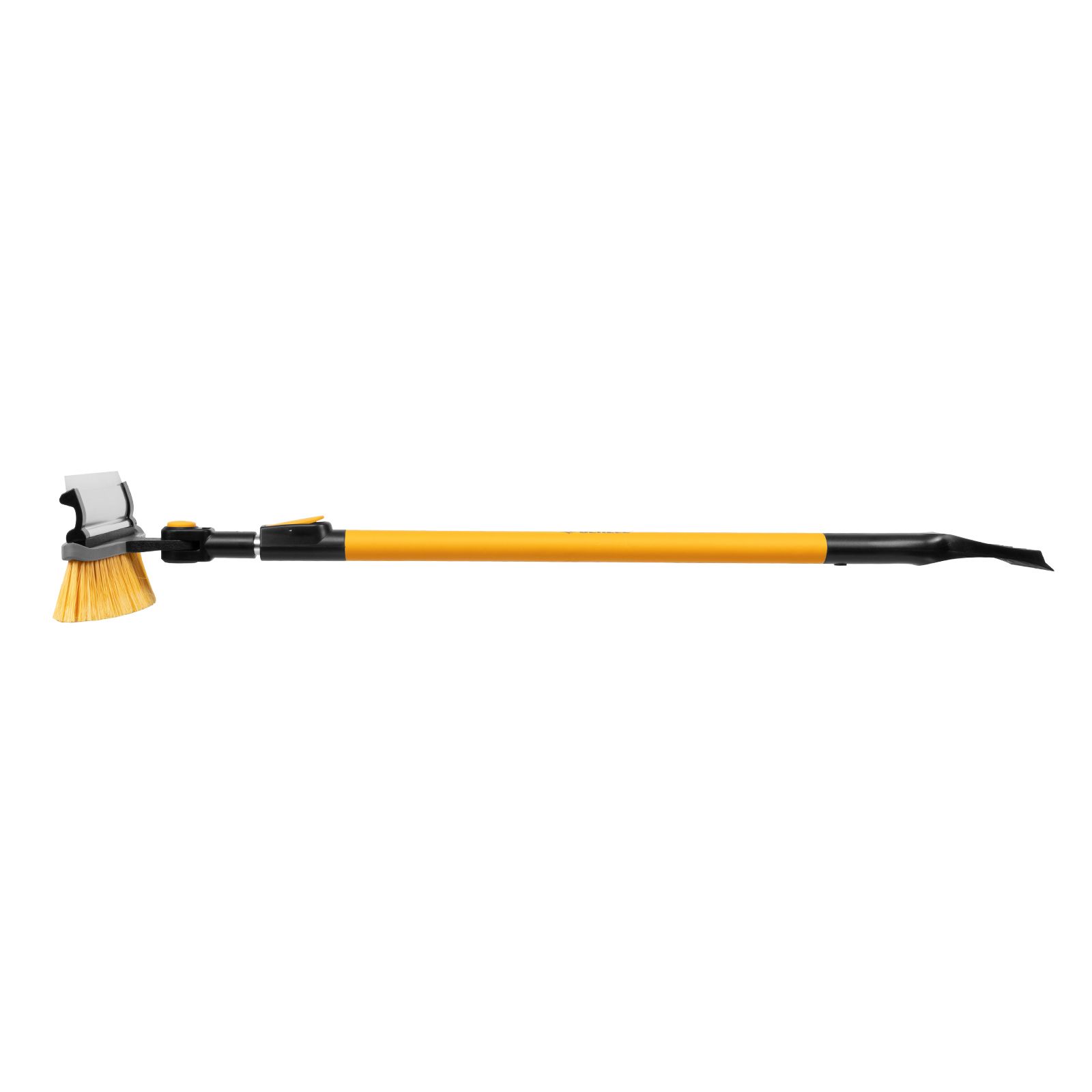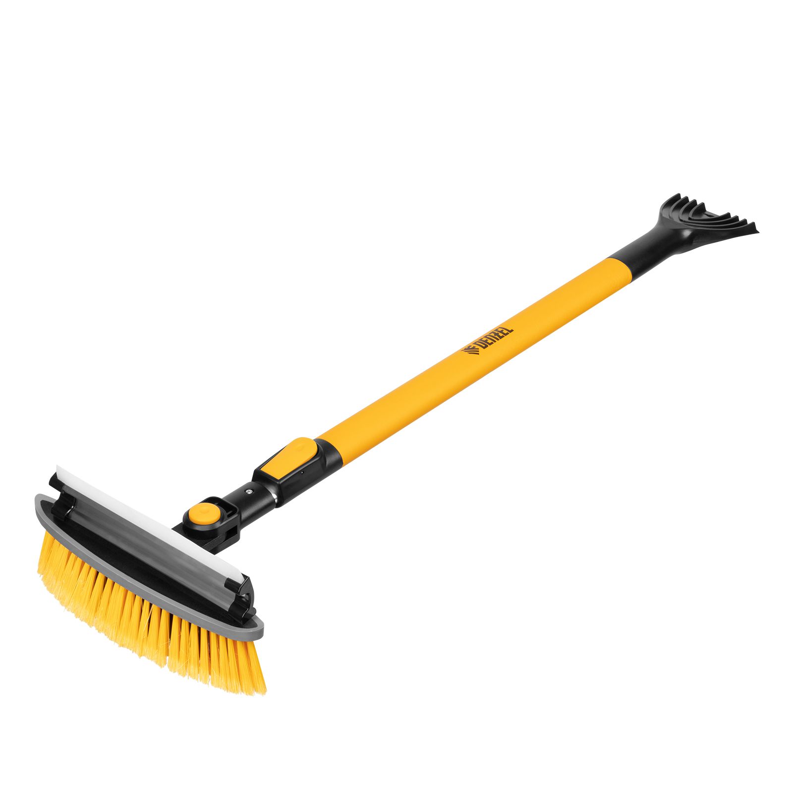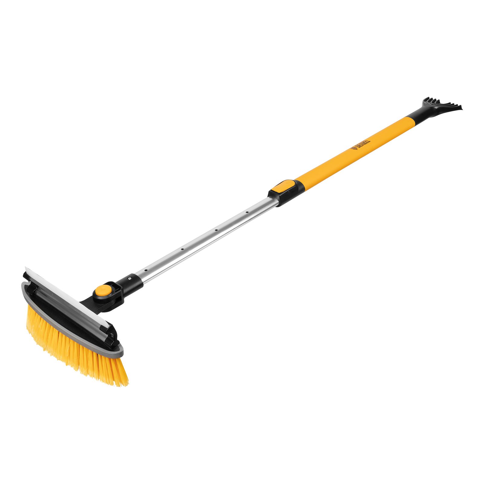 - Регулировка длины — рукоятка выдвигается и фиксируется на длине 950-1320 мм, за счет чего можно без труда очистить крышу транспортного средства.