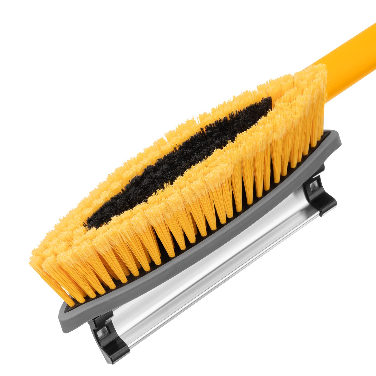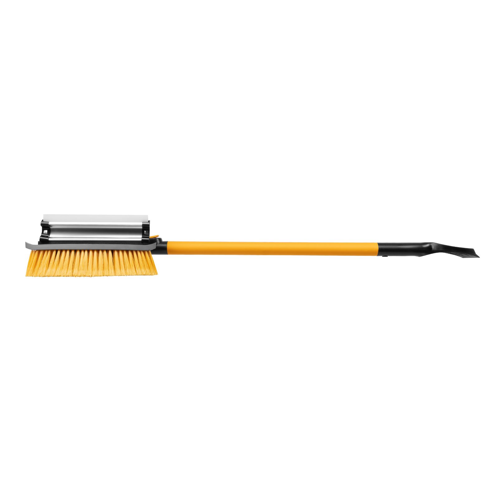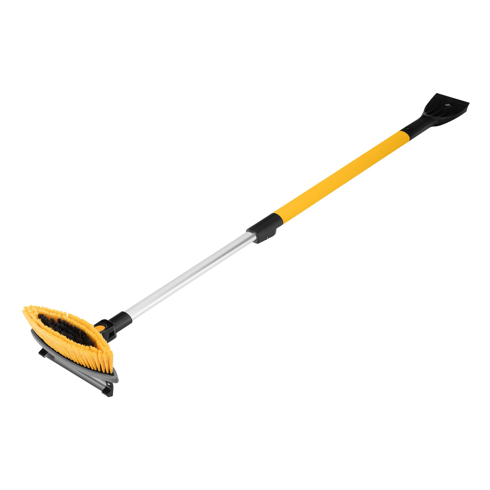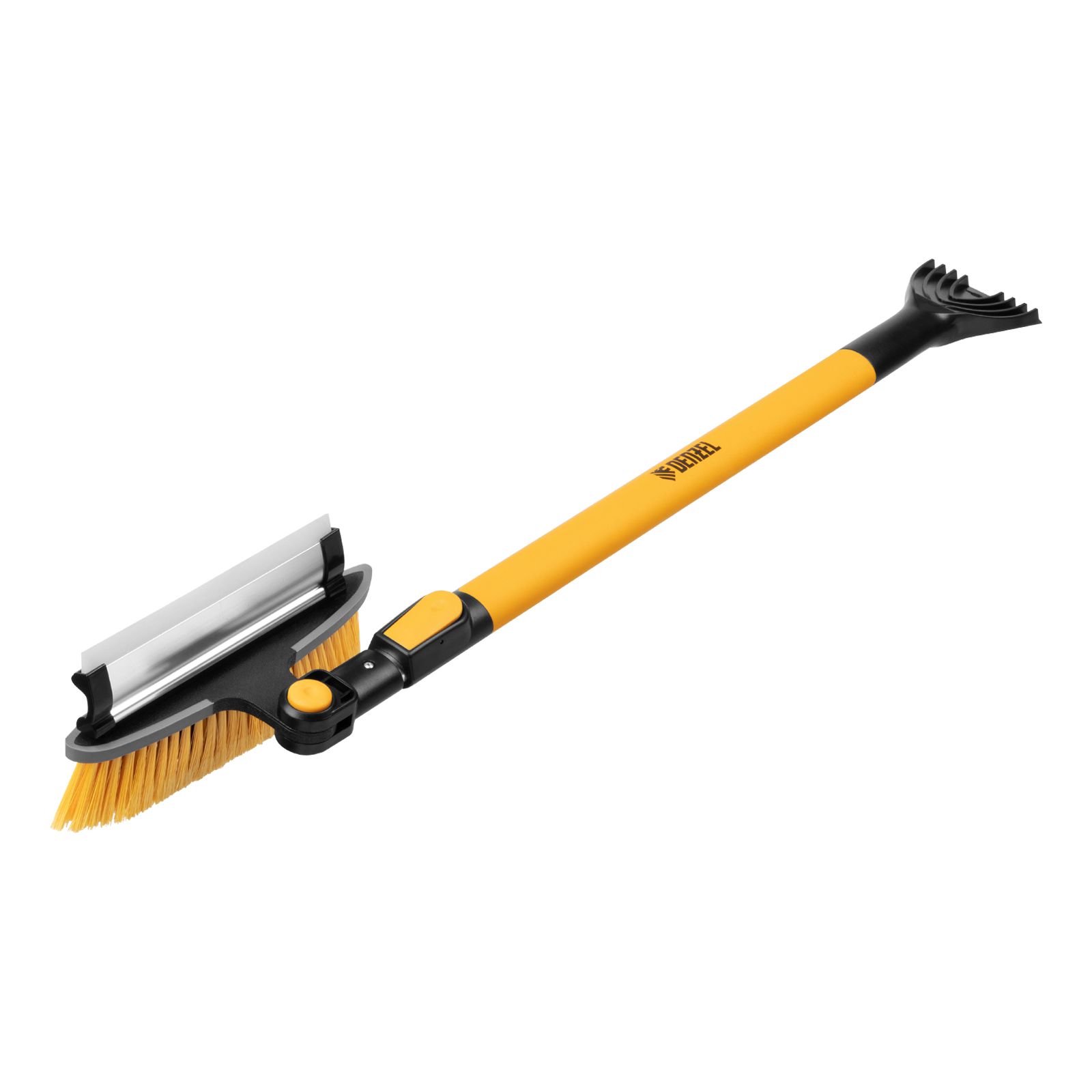 - Регулировка длины — рукоятка выдвигается и фиксируется на длине 950-1320 мм, за счет чего можно без труда очистить крышу транспортного средства.