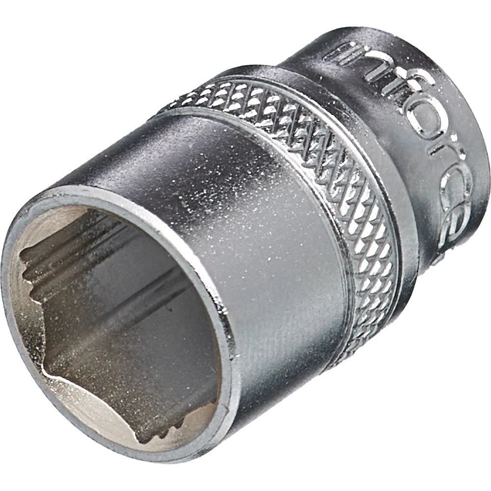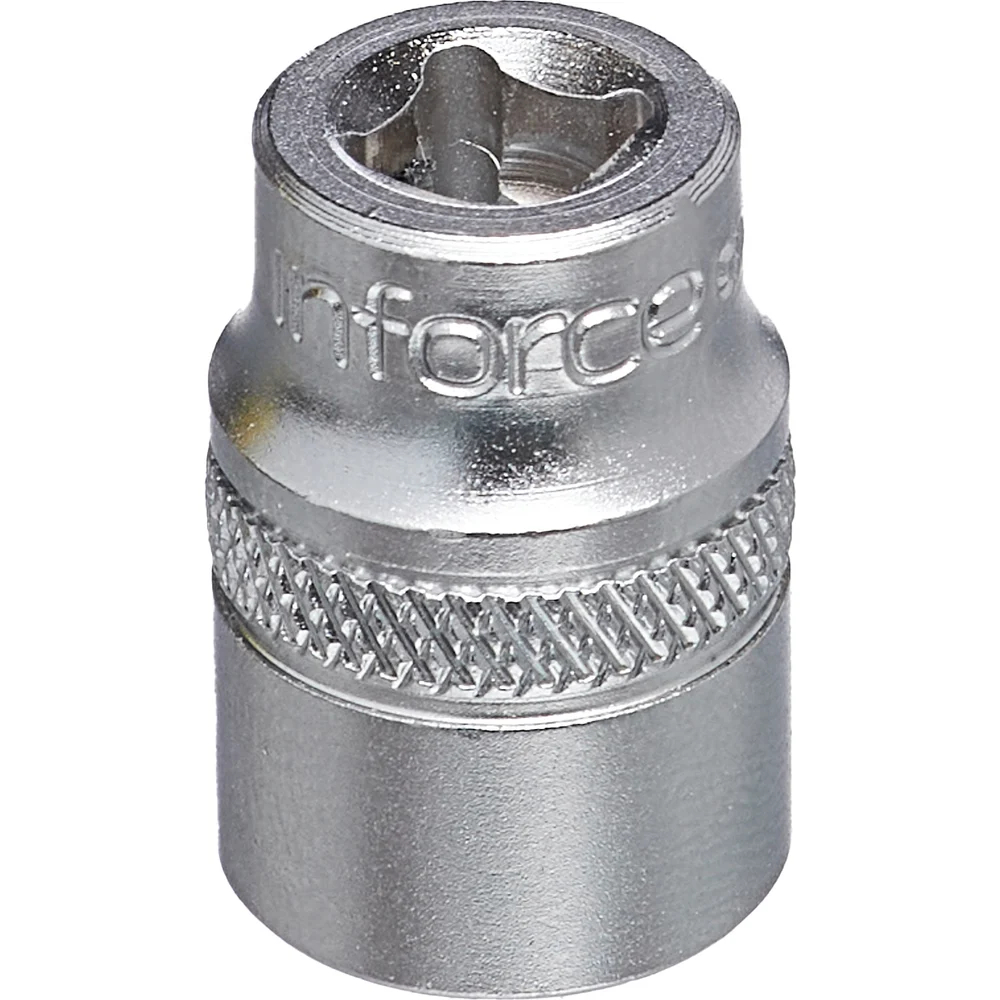 Головка торцевая шестигранная Inforce 11-01-462 предназначена для работы с крепежом. Оснастка изготовлена из хром-ванадиевой стали. Улучшенный профиль головки успешно справляется с крепежом, грани которого деформированы на 85%.