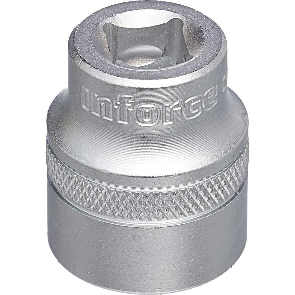 Головка торцевая шестигранная Inforce 11-01-471 предназначена для работы с крепежом. Оснастка изготовлена из хром-ванадиевой стали. Улучшенный профиль головки успешно справляется с крепежом, грани которого деформированы на 85%.