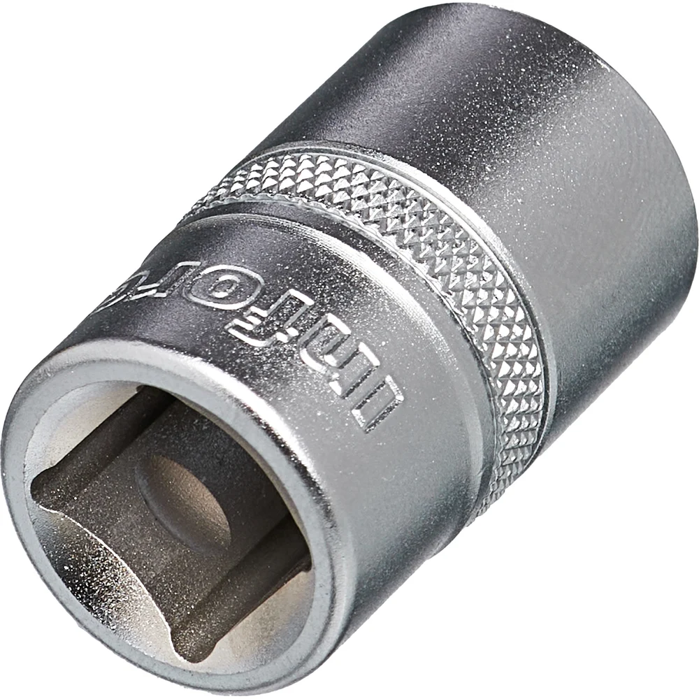 Головка торцевая шестигранная Inforce 11-01-479 предназначена для работы с крепежом. Оснастка изготовлена из хром-ванадиевой стали. Улучшенный профиль головки успешно справляется с крепежом, грани которого деформированы на 85%.