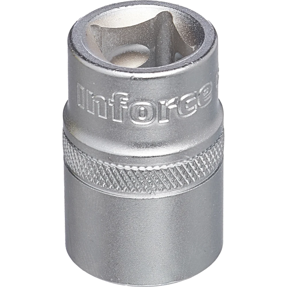 Головка торцевая шестигранная Inforce 11-01-481 предназначена для работы с крепежом. Оснастка изготовлена из хром-ванадиевой стали. Улучшенный профиль головки успешно справляется с крепежом, грани которого деформированы на 85%.