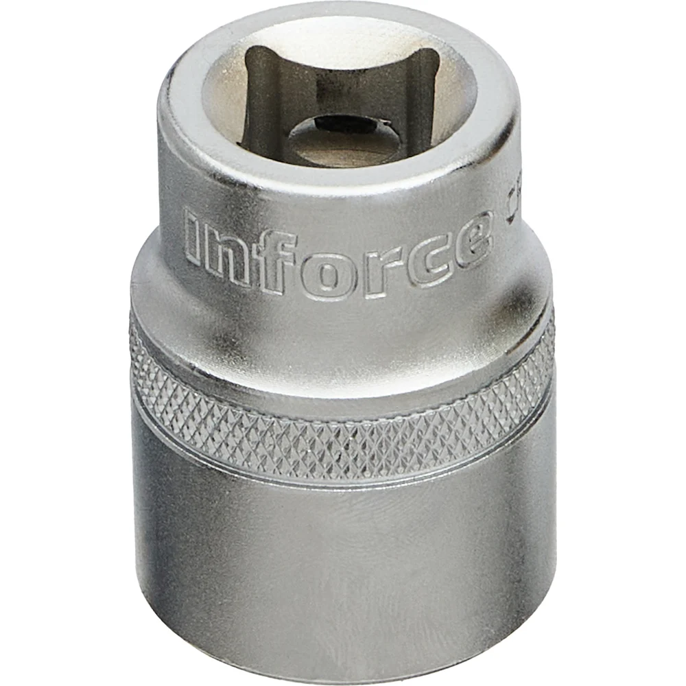 Головка торцевая шестигранная Inforce 11-01-484 предназначена для работы с крепежом. Оснастка изготовлена из хром-ванадиевой стали. Улучшенный профиль головки успешно справляется с крепежом, грани которого деформированы на 85%.