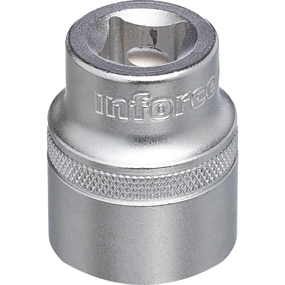 Головка торцевая шестигранная Inforce 11-01-485 предназначена для работы с крепежом. Оснастка изготовлена из хром-ванадиевой стали. Улучшенный профиль головки успешно справляется с крепежом, грани которого деформированы на 85%.