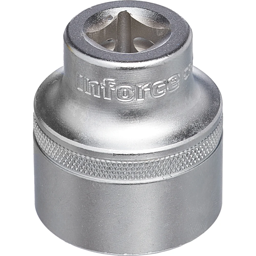 Головка торцевая шестигранная Inforce 11-01-488 предназначена для работы с крепежом. Оснастка изготовлена из хром-ванадиевой стали. Улучшенный профиль головки успешно справляется с крепежом, грани которого деформированы на 85%.