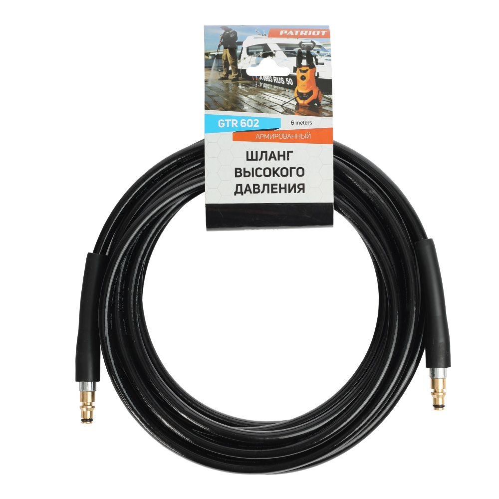 Шланг армированный PATRIOT GTR 602 из полиуретана длиной 6 метров. Предназначен для подачи воды под давлением от моющего аппарата к пистолету. Совместим с мойками Patriot 3, 5, 6, 7 и 9 серий.