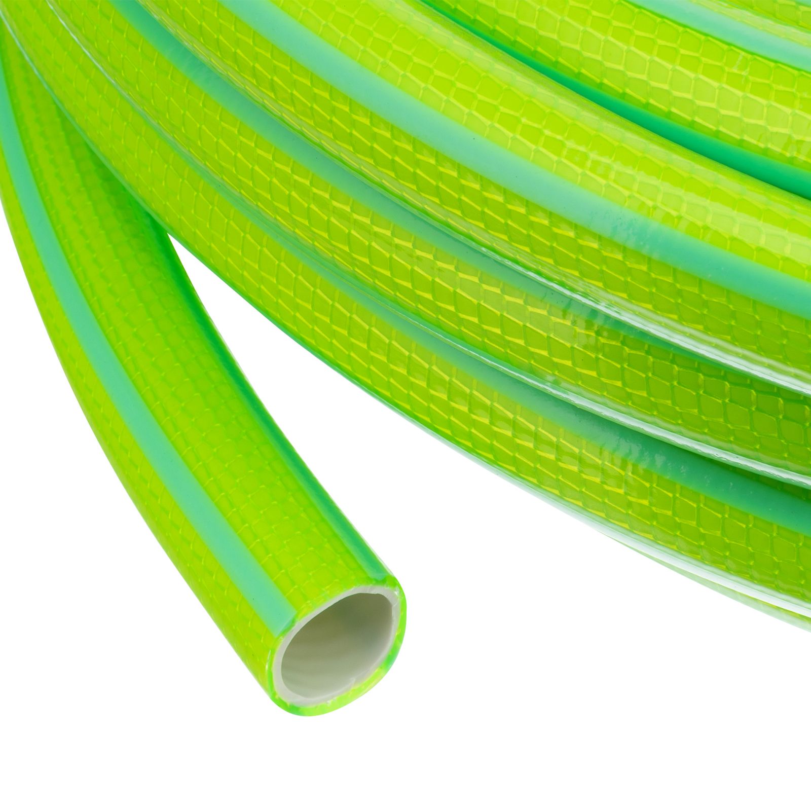 - Высокий ресурс — шланг армирован суперпрочной полиэстерной нитью с инновационным плетением, способствующим равномерному распределению нагрузки.