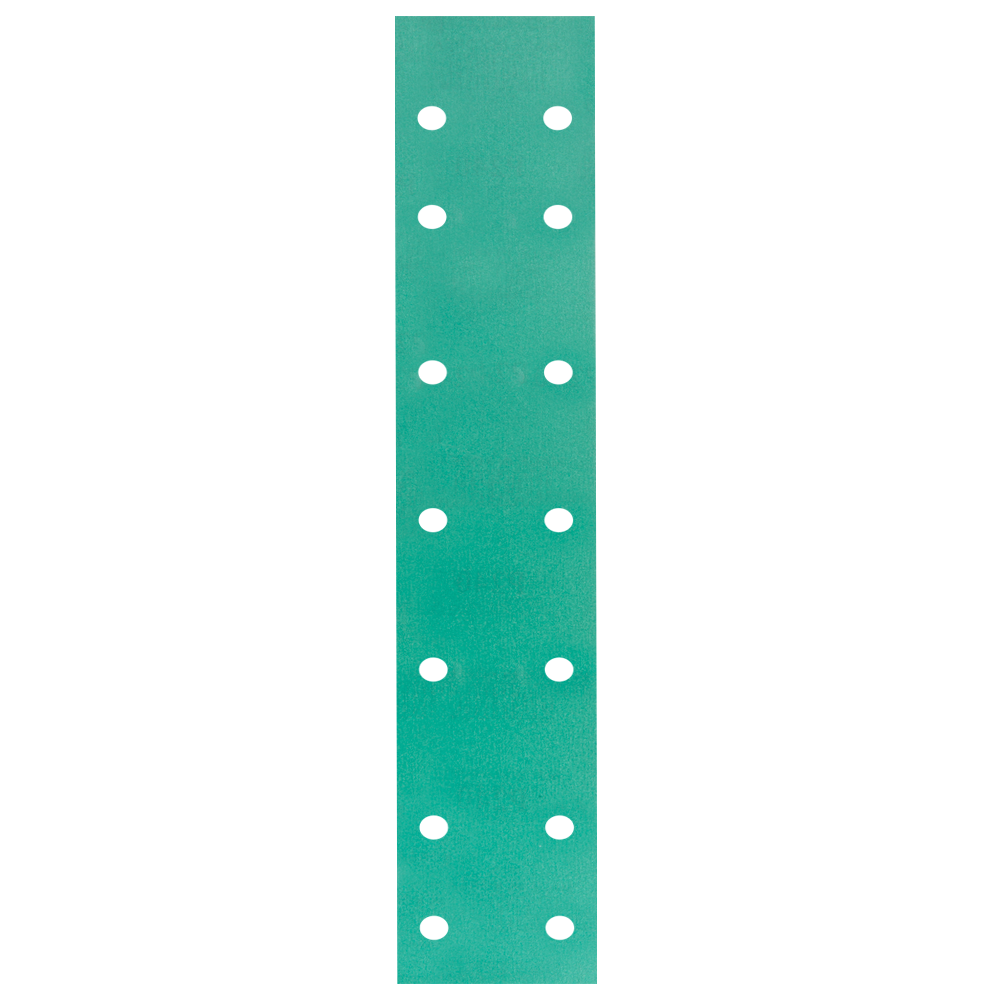 Шлифовальные полоски на прочной эластичной и износостойкой полиэфирной подложке (70 x 420 мм, 14 отверстий). HANKO DC341 — это материал, который обеспечивает повышенную скорость резания по сравнению с абразивами на бумаге. Благодаря ровной пленочной основе, большее количество зерен контактируют с обрабатываемой поверхностью, что обеспечивает высокую скорость в работе абразива.