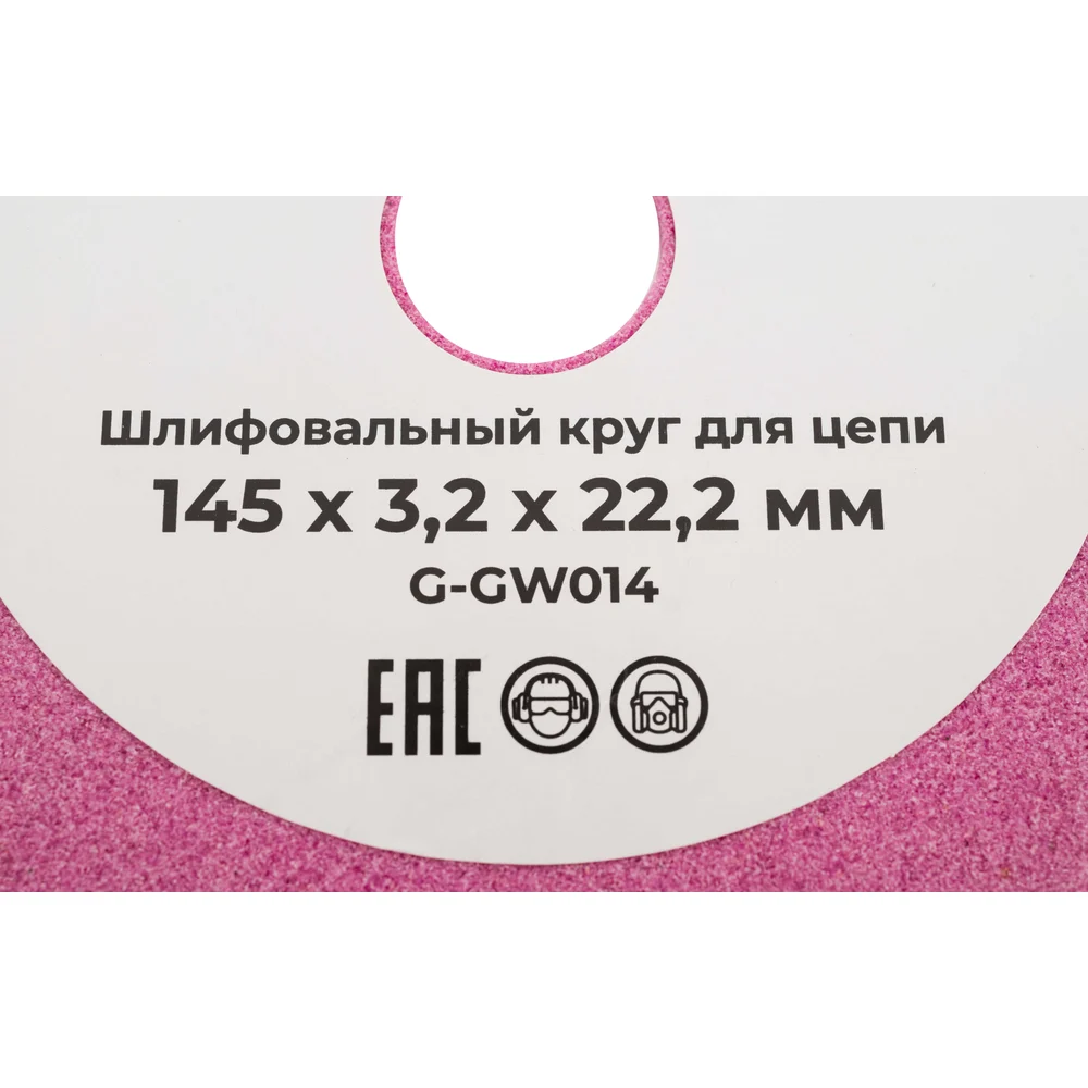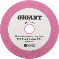 Диск абразивный точильный Gigant145x3,2x22,2 мм G-GW014 предназначен специально для заточки цепей для бензопил. Его можно использовать для заточки цепей любых производителей с шагом 3/8" PM, 0.325", 1/4". Максимальное число оборотов 4600 об/мин. Не забывайте соблюдать технику безопасности и использовать защитные средства.