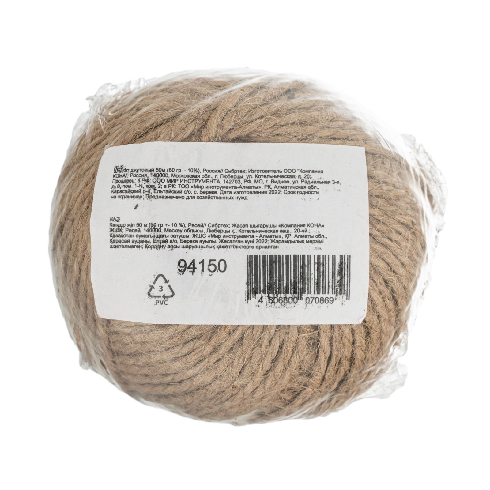 Двупрядный джутовый шпагат Сибртех 94150 диаметром 1,5 мм и длиной 50 м, весом 60 г ± 10%, — обвязочный материал, применяющийся для прошивки документов, перевязки, упаковывания или опломбирования различных предметов и оборудования. Будет полезен в банковских, почтовых, архивных организациях, а также в пищевой промышленности и в быту.