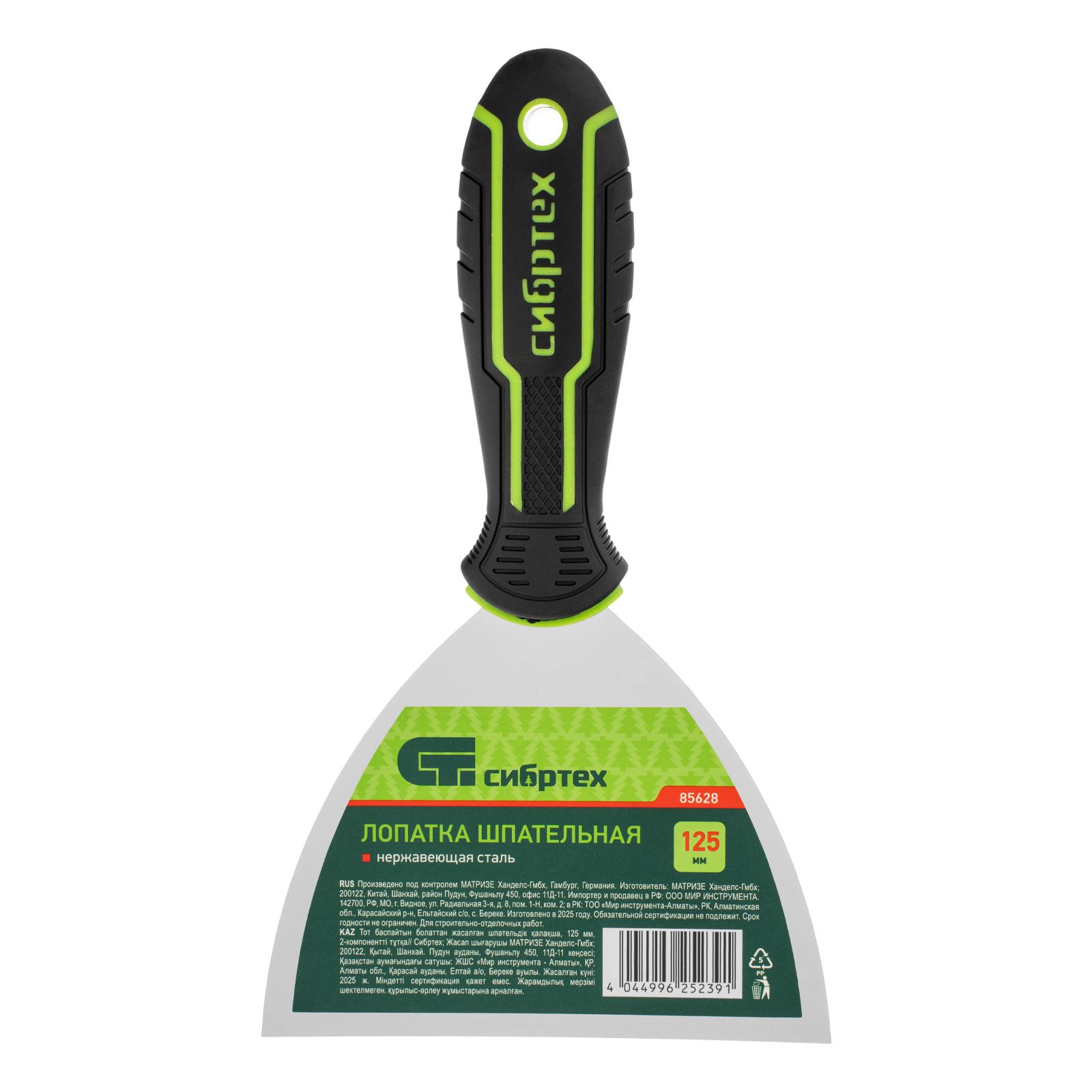 Шпательная лопатка Сибртех 85628 с полотном шириной 125 мм, изготовленным из нержавеющей стали, применяется для работы со строительными растворами: смешивания, нанесения и разравнивания шпатлевок, штукатурок, клеевых составов, затирок. Подходит для заделки трещин, устранения неровностей. Инструмент будет полезен при проведении строительных, ремонтных и отделочных работ.