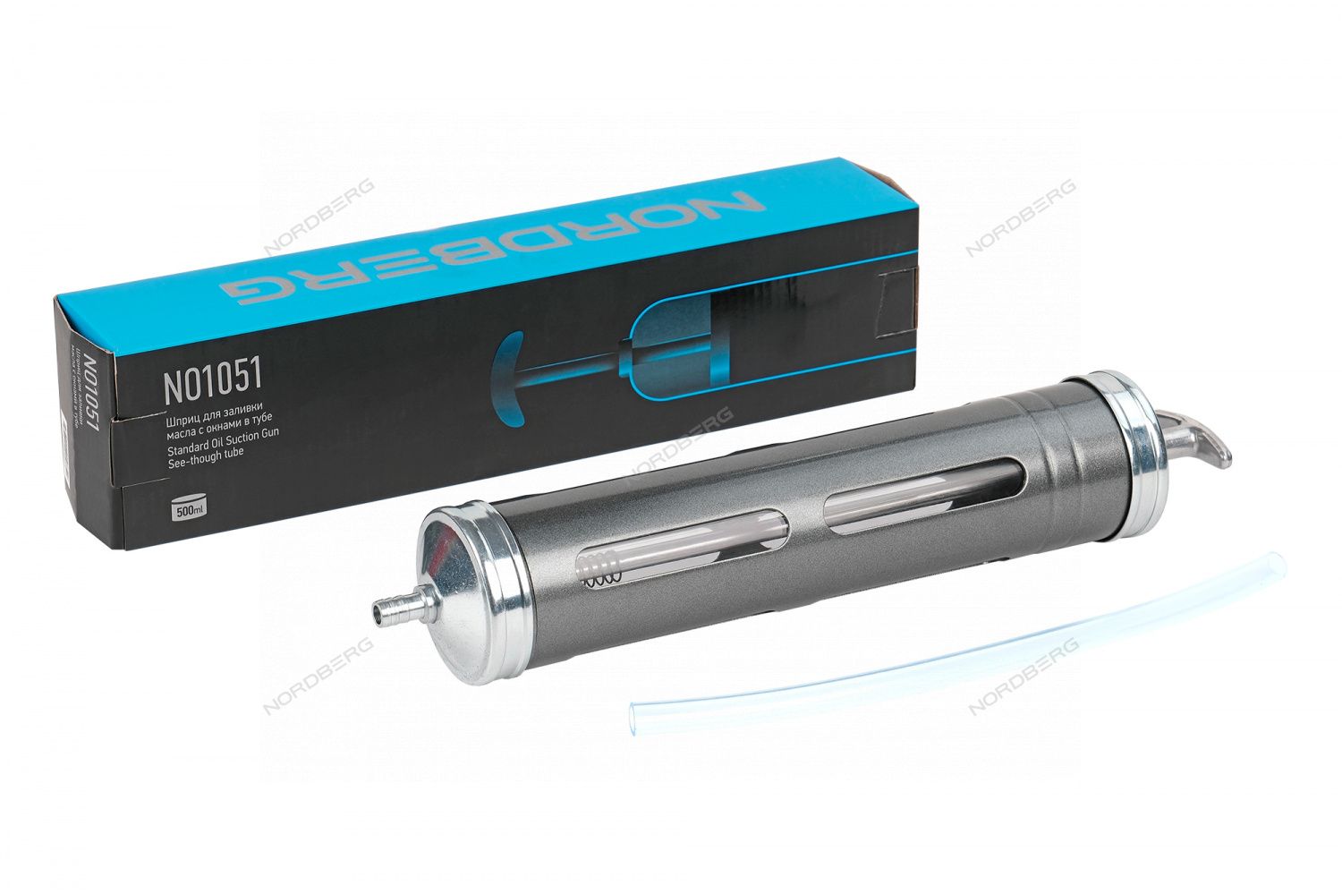 Шприц для заливки масла с окнами в тубе NORDBERG NO1051 предназначен для откачки и заливки масел и других технических жидкостей.