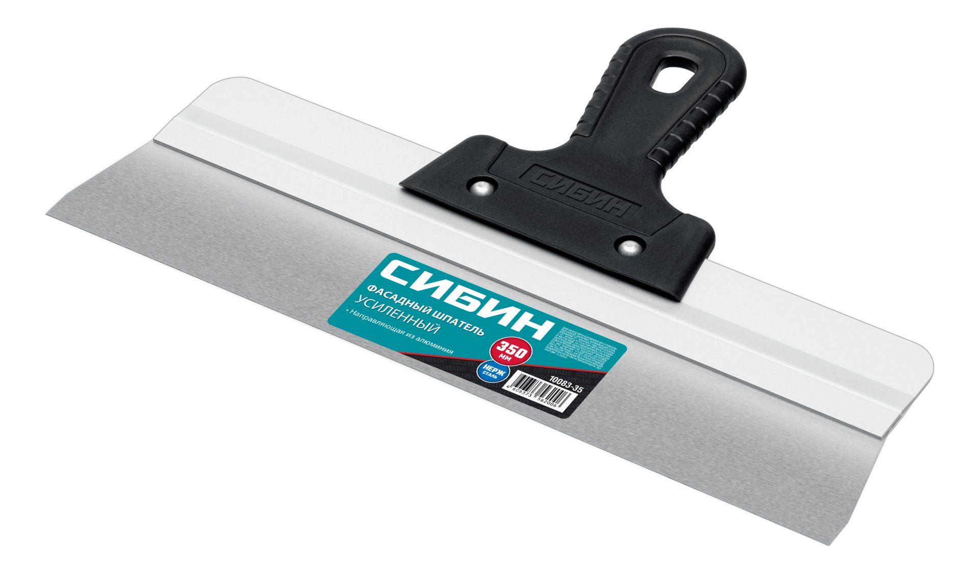 Шпатель СИБИН - отличный выбор для строительства и ремонта! Полотно из нержавеющей стали обеспечивает надежность и долгий срок службы инструмента, алюминиевая направляющая предотвращает изгиб полотна, а эргономичная однокомпонентная рукоятка создает условия для комфортной работы.