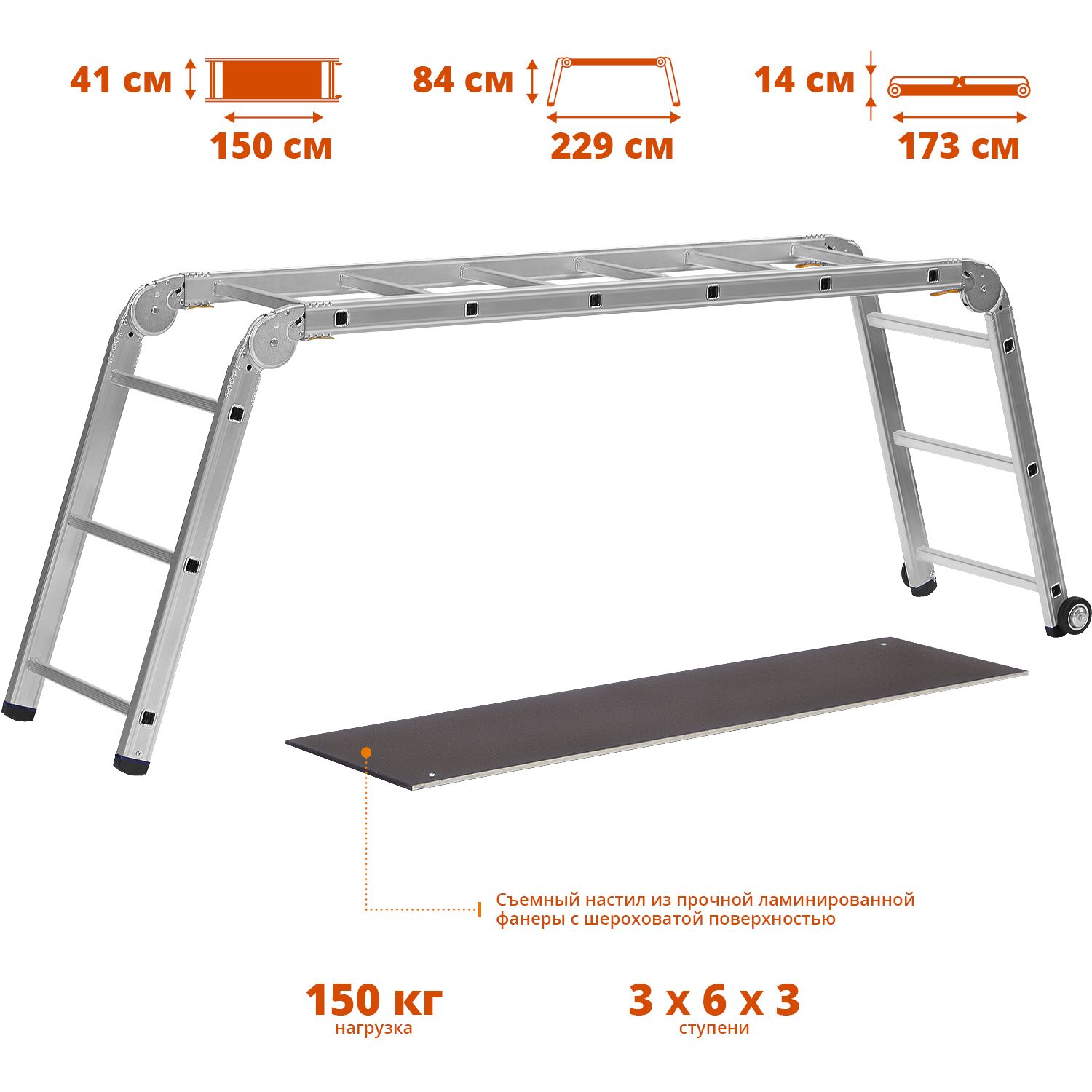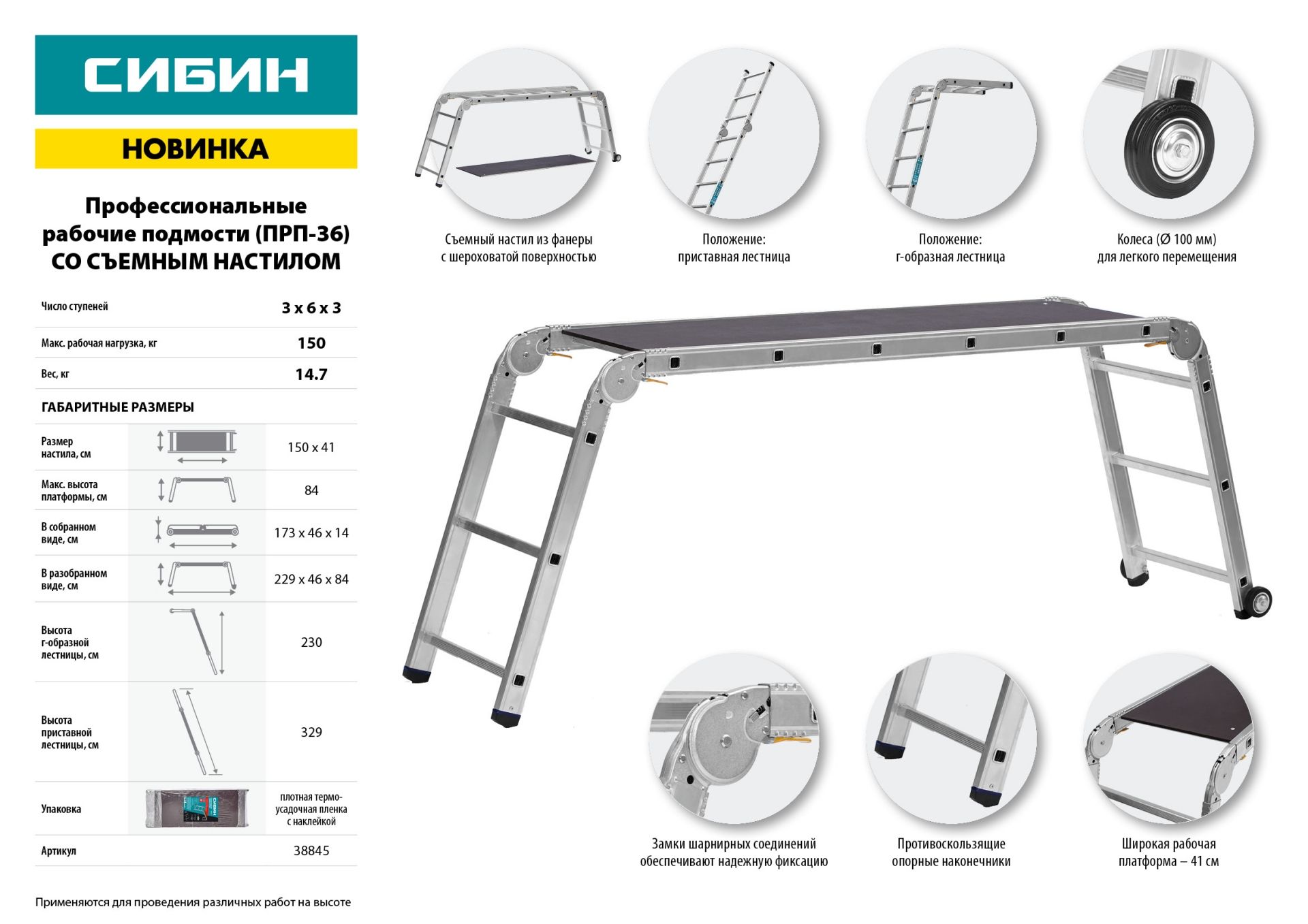 Лестницы СИБИН предназначена для выполнения различных хозяйственных работ. Надежная конструкция в сочетании с высококачественными материалами обеспечивают легкость и удобство в эксплуатации.