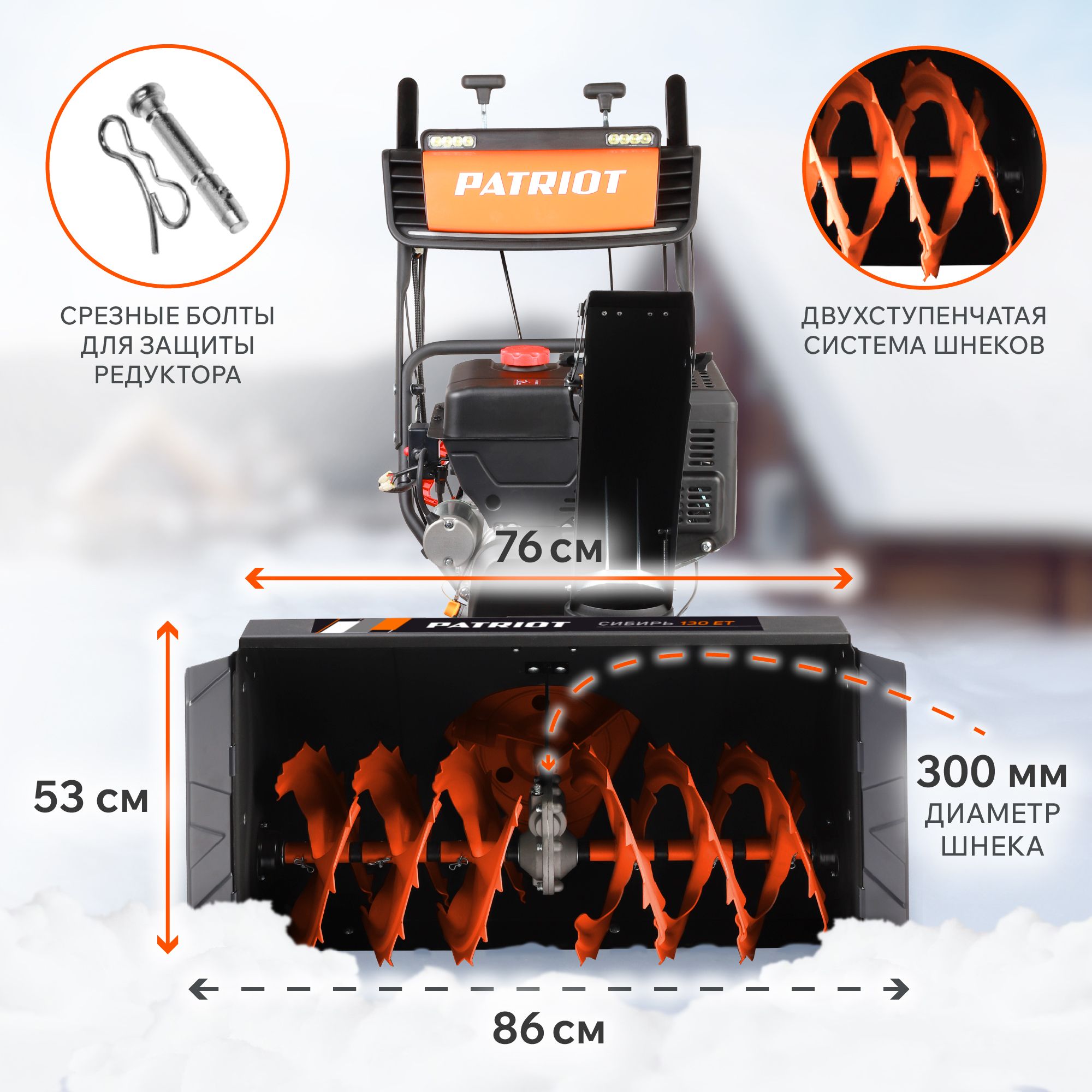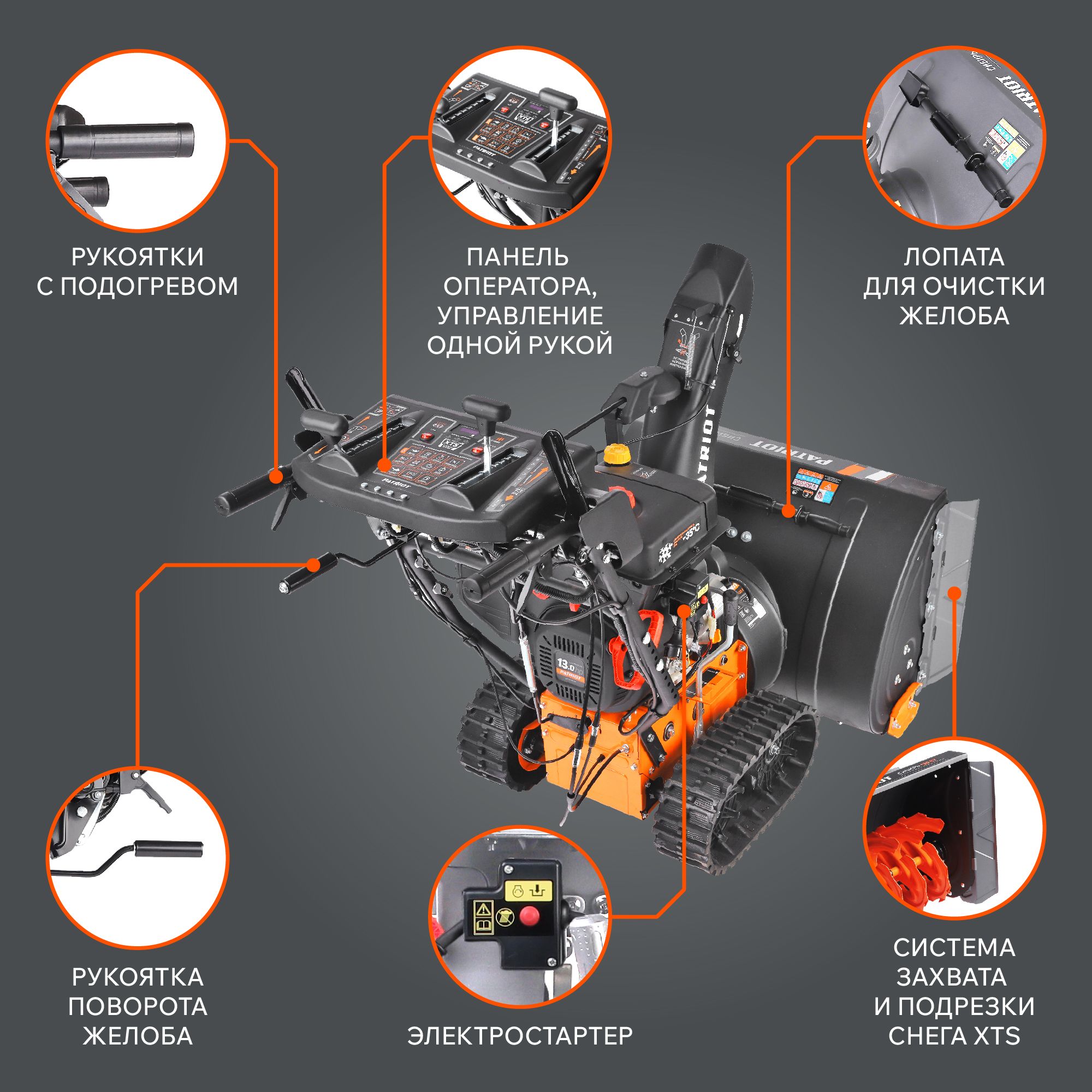 Высокопроизводительный снегоуборщик на гусеничном ходу PATRIOT Сибирь 130 ЕТ подходит для уборки снега и расчистки снежных заносов. Высокий зубчатый шнек с агрессивным дизайном перемалывает любой вид снега, включая сырой и обледеневший. Система XTS расширяет возможности для уборки на 10%, увеличивая площадь и высоту захвата. «Зимний» двигатель защищен от сильных морозов до -35 градусов, а функция электростарта позволяет запустить его по нажатию одной кнопки. Для работы в темное время модель оснащена LED фарой. Управление вынесено на отдельную панель, оснащённую счётчиком моточасов\тахометром и дающую быстрый доступ ко всем его элементам.