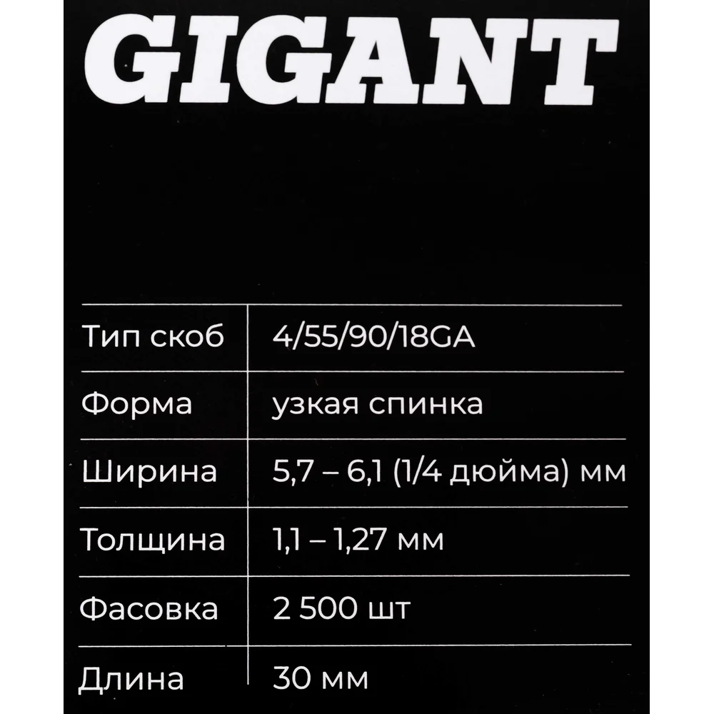 Скобы 18GA для пневматического степлера 30 мм, 2500 шт./уп Gigant GSPS-8 применяются при сборке каркасов, контейнеров, деревянной мебели, креплении облицовочных материалов к поверхностям из фанеры, дерева, ДСП, с помощью степлера электрического или пневматического. Скобы изготовлены из закаленной оцинкованной проволоки, защищены от коррозии. Имеют высокую пробивную способность. Обеспечивают надежное и долговечное крепление.