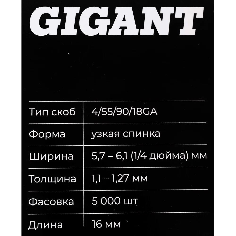 Скобы 18GA для пневматического степлера 16 мм, 5000 шт./уп Gigant GSPS-12 подходят к пневматическим степлерам, совместимым с крепежами сечением 1,25 х 1,0 мм, длиной 16 и шириной 5,7 мм. Их используют для фиксации ткани, бумаги, пластиковых и деревянных деталей на деревянных поверхностях. Скобы пригодятся для ремонтных и отделочных работ. Скобы изготовлены из закаленной оцинкованной проволоки, защищены от коррозии. Имеют высокую пробивную способность. Обеспечивают надежное и долговечное крепление.