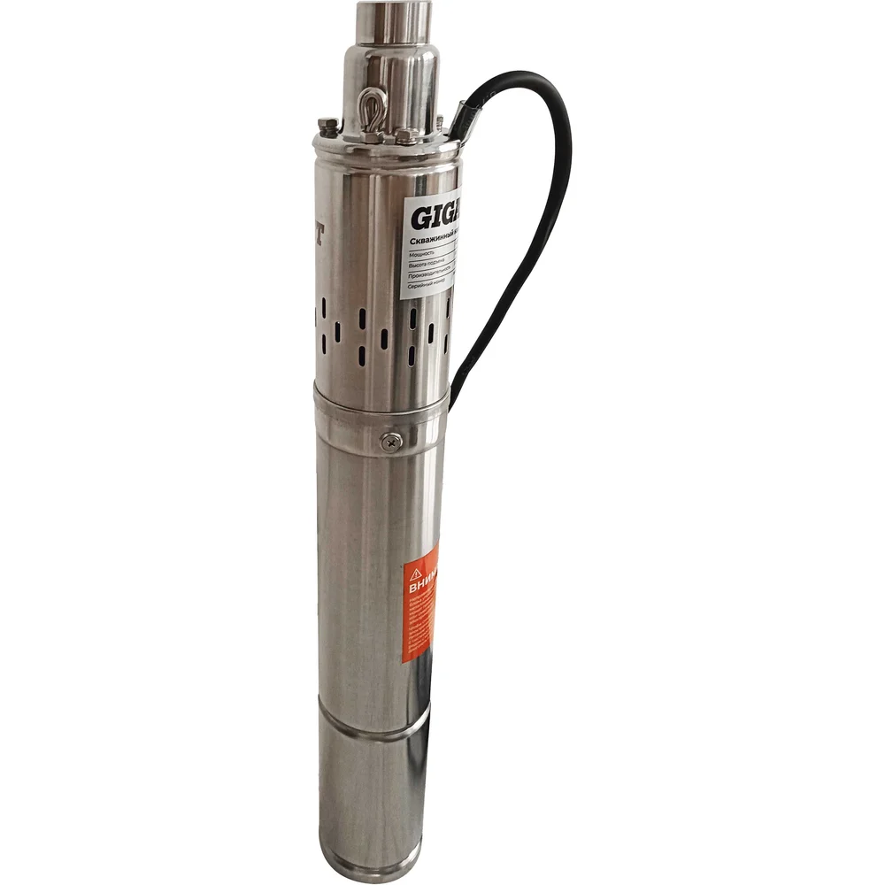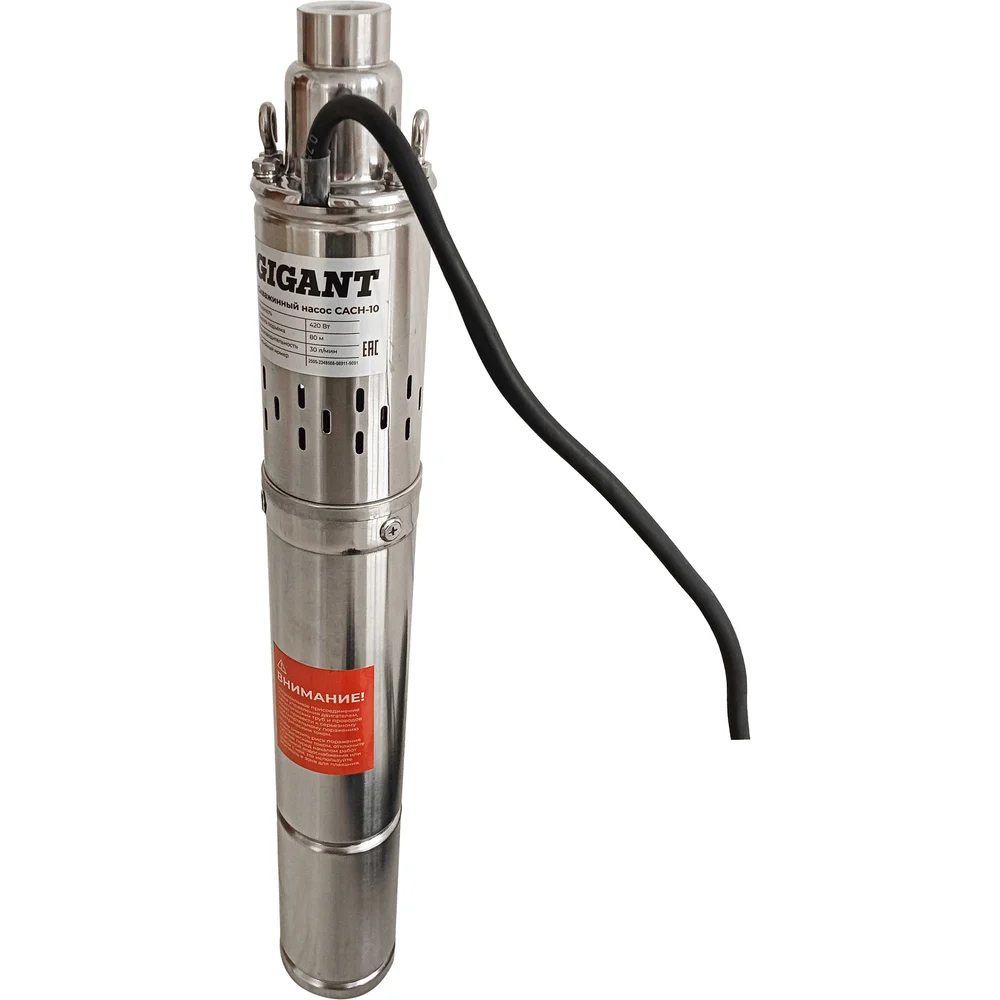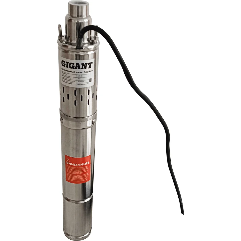 Скважинный насос Gigant CACH-10 подходит для установки в скважины диаметром от 100 мм. Насосный винт выполнен из хромированной, а корпус – из нержавеющей стали. Степень защиты IPХ8 обеспечивает его герметичность и защиту электродеталей от попадания воды при погружении насоса на глубину.