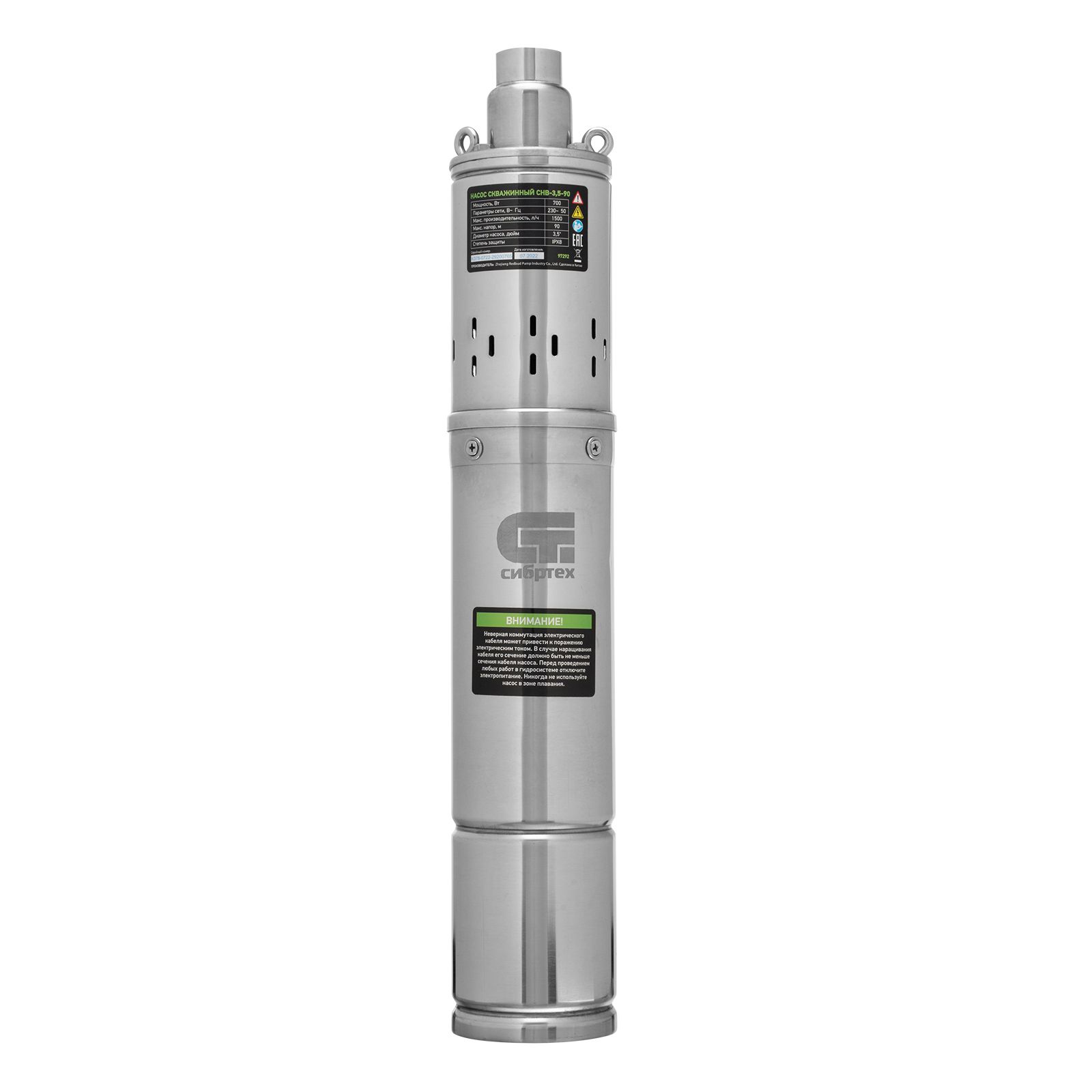 Скважинный винтовой насос Сибртех СНВ-3,5-90 97292 диаметром 3,5", мощностью 700 Вт, способен перекачивать 1500 литров воды в час под напором 90 м. Используется для обеспечения бесперебойного водоснабжения и организации системы орошения на загородном участке или в приусадебном хозяйстве. Забор воды возможен из скважины, колодца или водоема. Допустимая глубина погружения составляет 80 м. Благодаря высокой производительности и напору насос способен обеспечивать несколько точек водоразбора.