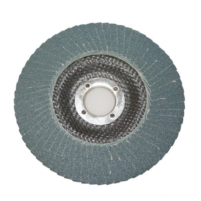Круг лепестковый SMIRDEX 915 Flap для зачистки и шлифовки с торцевым исполнением, выполненный из оксидированного циркония, диаметром 125 мм. Этот инструмент специально предназначен для эффективной обработки металлических поверхностей, включая снятие сварочных швов и удаление окалины и ржавчины.