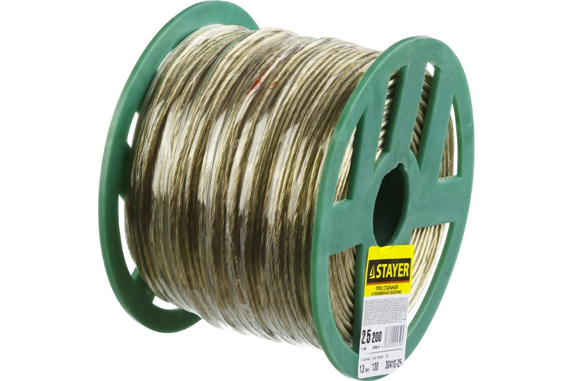 Стальной трос в полимерной оболочке STAYER 2,5 мм L=200 м. 30410-25