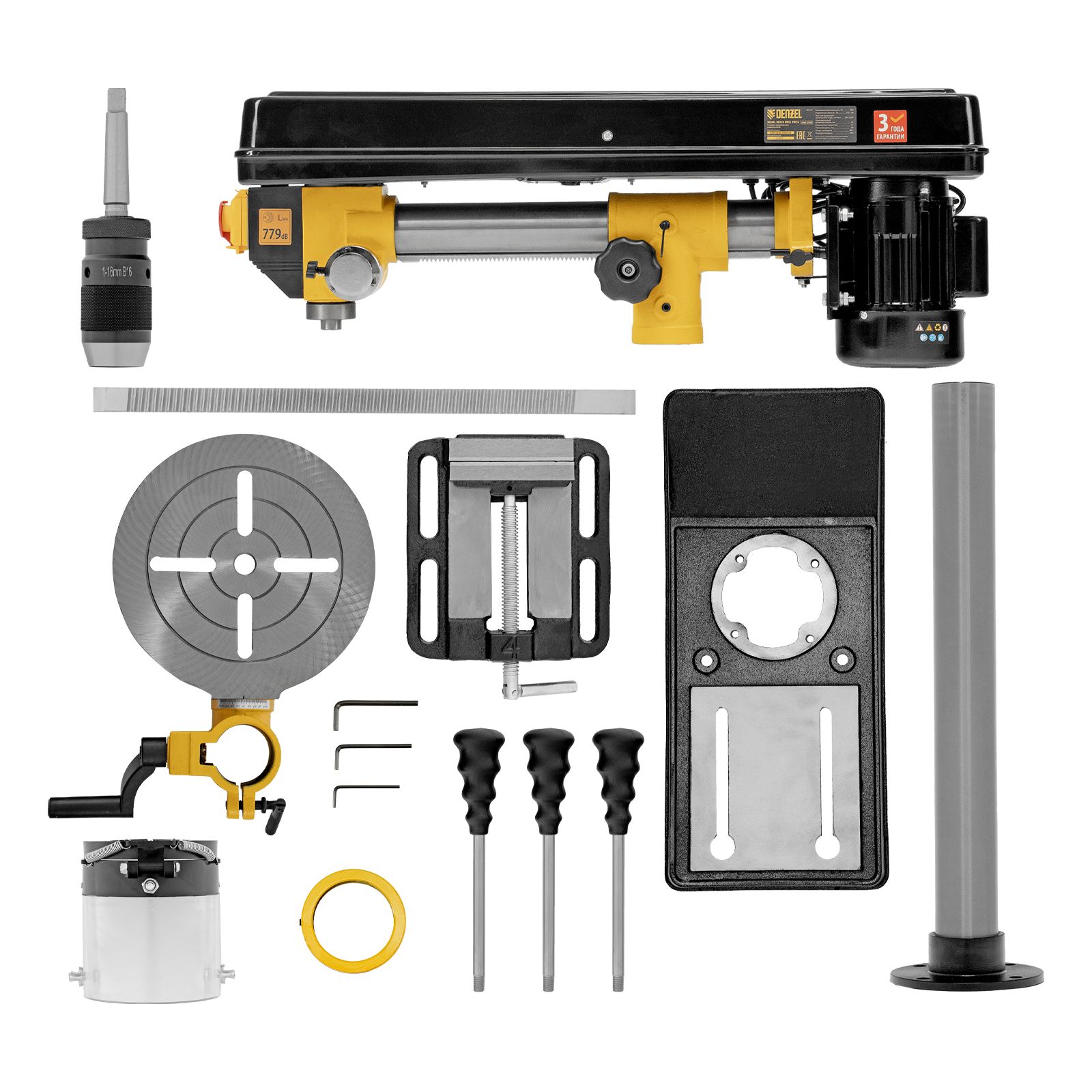 - Расширенные возможности регулировки — при необходимости можно изменить положение сверлильной головки и угол ее наклона в диапазоне от -45 до +45°.