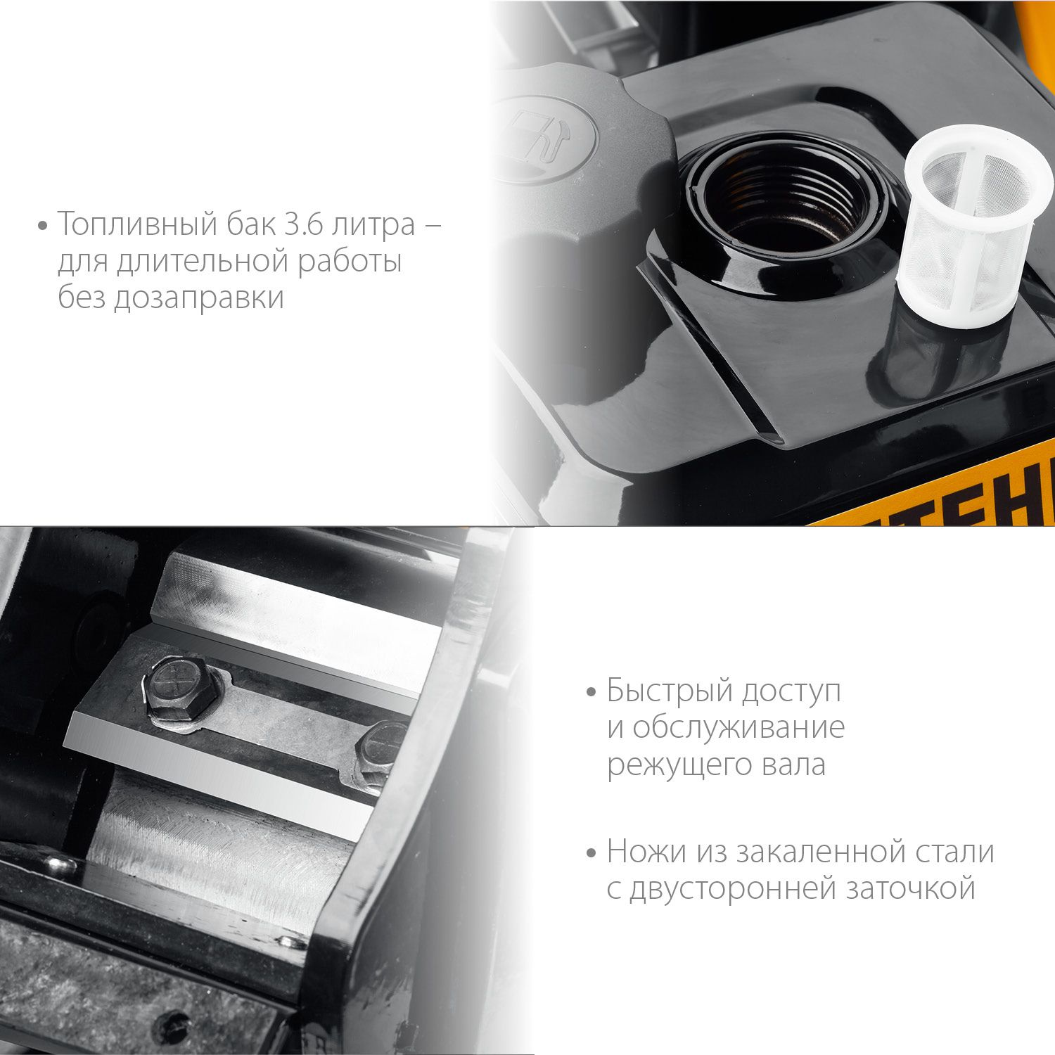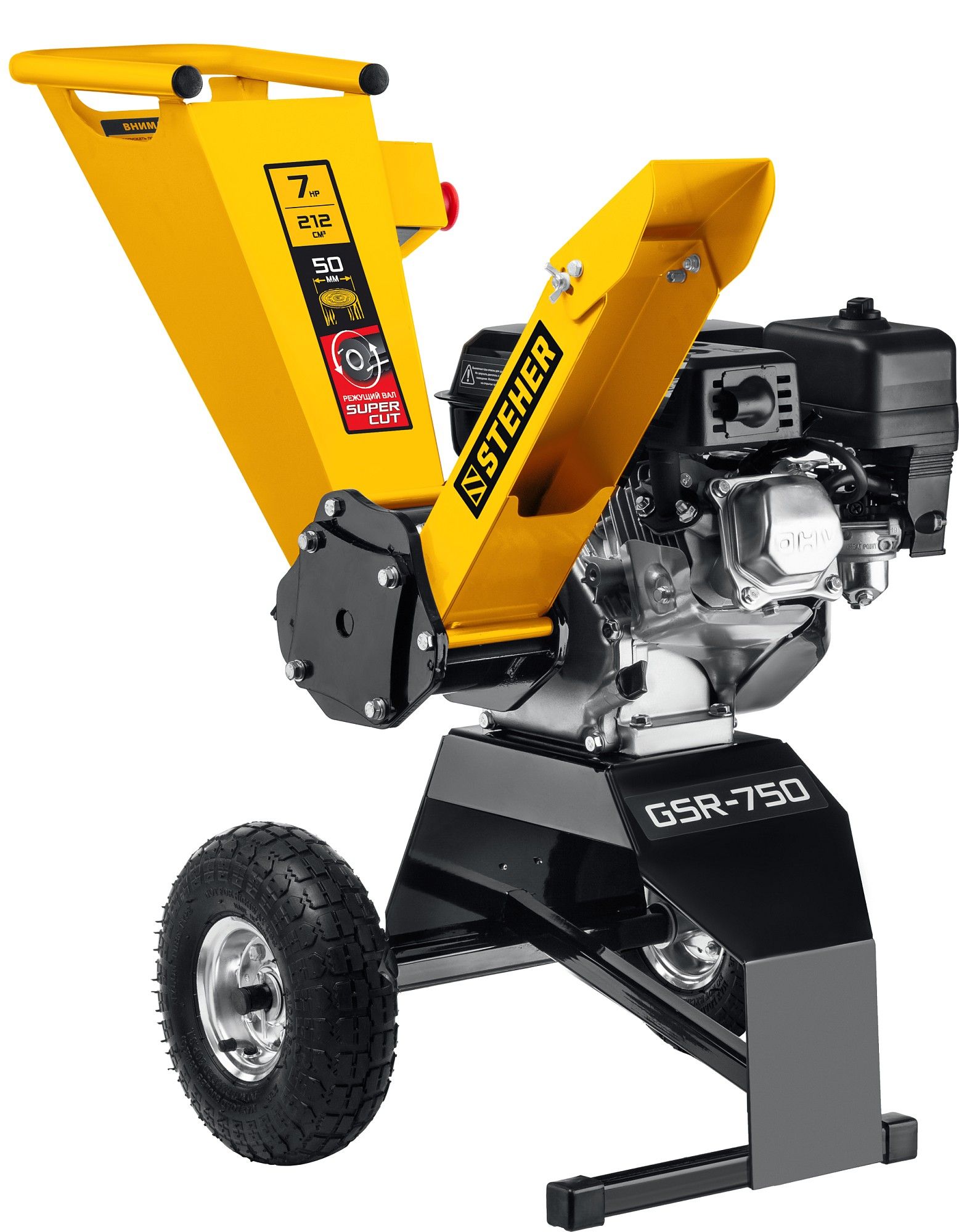 Высокопроизводительный компактный измельчитель древесного материала диаметром до 50 мм. Внимание! Начиная с даты производства 04.2023, инструмент поставляется с измененной формой загрузочного желоба и пневматическими колесами. Без изменения уровня качества