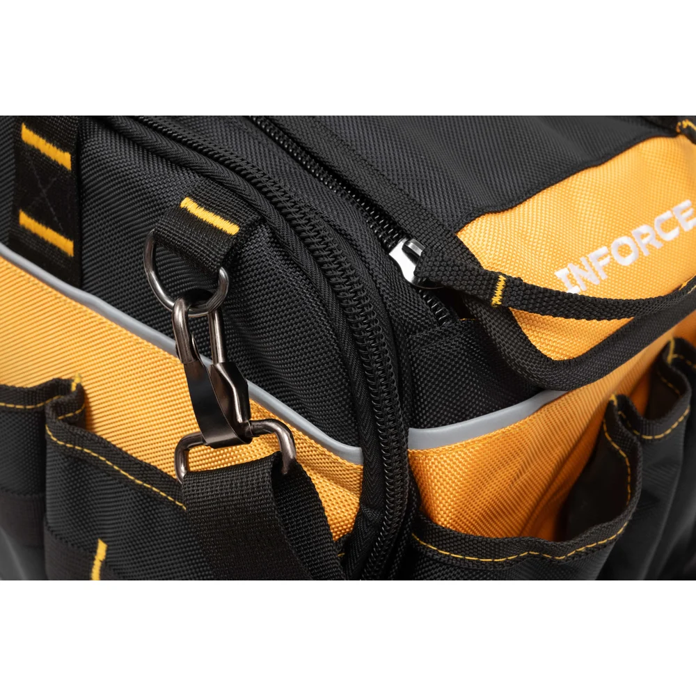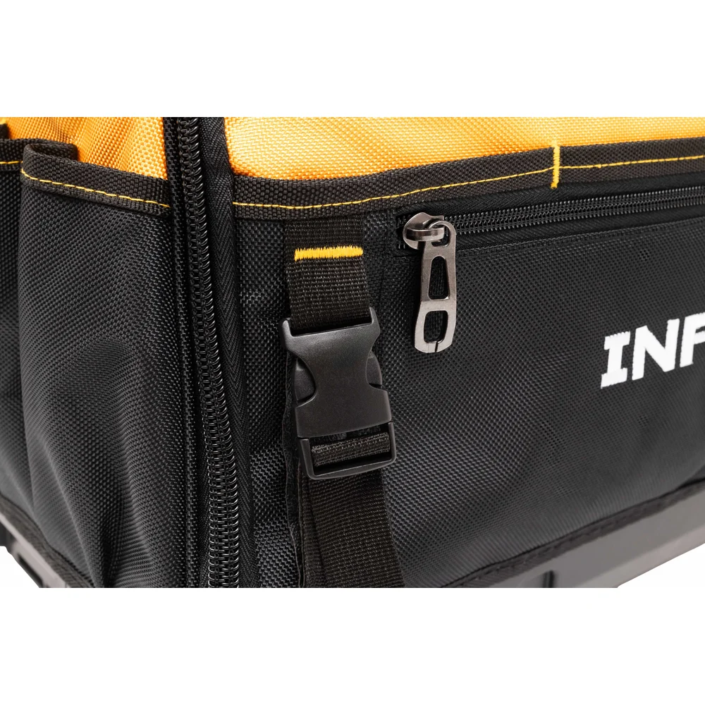 Сумка для инструмента Inforce 20" с возможностью объединения в систему MODULAR SYSTEM 11-25-19 незаменима для хранения и транспортировки инструмента, удобная и вместительная. Благодаря расположению карманов инструмент можно найти за считанные секунды. Выполнена из качественных материалов, что гарантирует долговечность сумки.