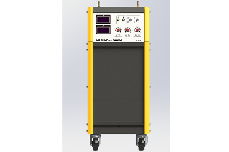 Источник сварочного тока, интегрированный в устройство, обеспечивает стабильные сварочные параметры: жесткая ВАХ «CV» (Constant Voltage) для автоматической сварки и падающая ВАХ «CC» (Constant Current) для ручной. Этот аппарат демонстрирует впечатляющую производительность с 100% рабочим циклом (ПВ) и возможностью сварки с током до 1000 А.
