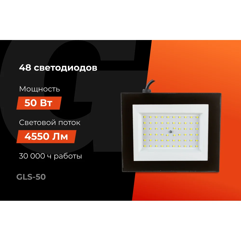 Светодиодный прожектор Gigant 50 Вт 6400 К 220 В GLS-50 обладает превосходным набором эксплуатационных характеристик (долговечность, равномерность светового потока, экологичность, энергоэффективность и т. д.), благодаря чему является идеальным вариантом для замены устаревших моделей галогенных прожекторов. Герметичный корпус не боится негативного воздействия окружающей среды и позволяет использовать данную модель на улице при любых погодных условиях. Дополнительные характеристики: Частота сети - 50 – 60 Гц. Кол-во светодиодов - 48. Тип светодиодов - SMD 2835. Рабочая температура - от -40 до +40 °C. Класс защиты - IP65.