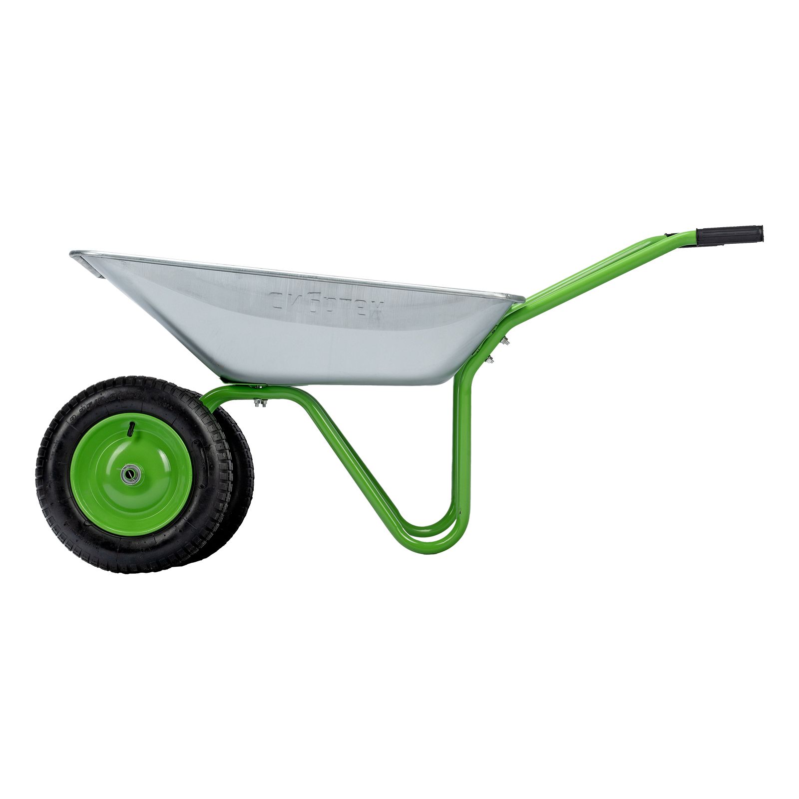 Двухколесная садовая тачка Сибртех 689135 грузоподъемностью 120 кг, с объемом кузова 65 л, служит для транспортировки легких грузов при выполнении садовых и сельскохозяйственных работ. С ее помощью можно привести в порядок территорию и убрать листья, собрать урожай и выполнить другие работы на загородном участке. Два колеса обеспечивают высокую грузоподъемность, а также устойчивость во время движения по прямой и на поворотах. Вес груза распределяется равномерно, поэтому тачка не проваливается даже в рыхлый грунт.