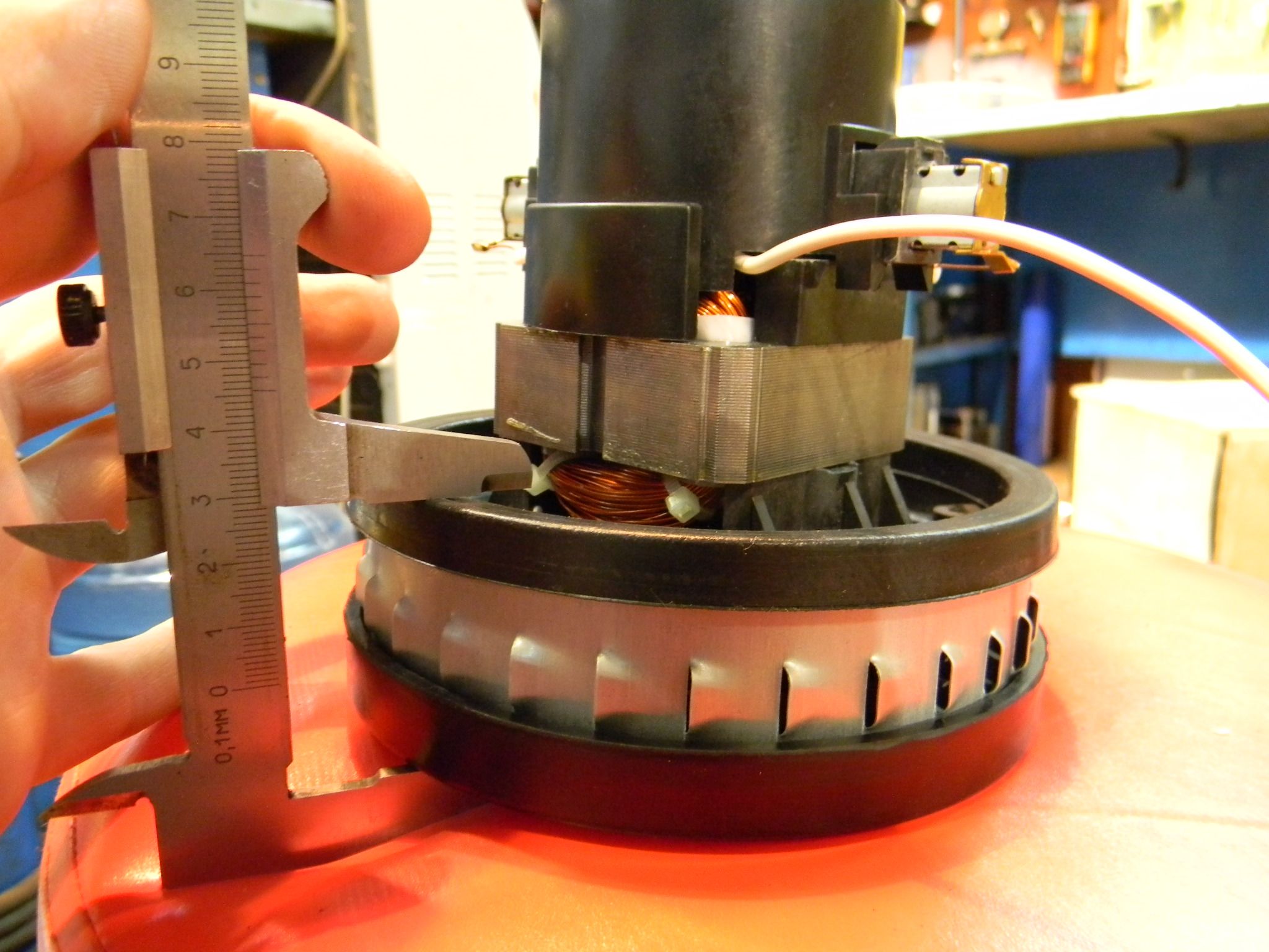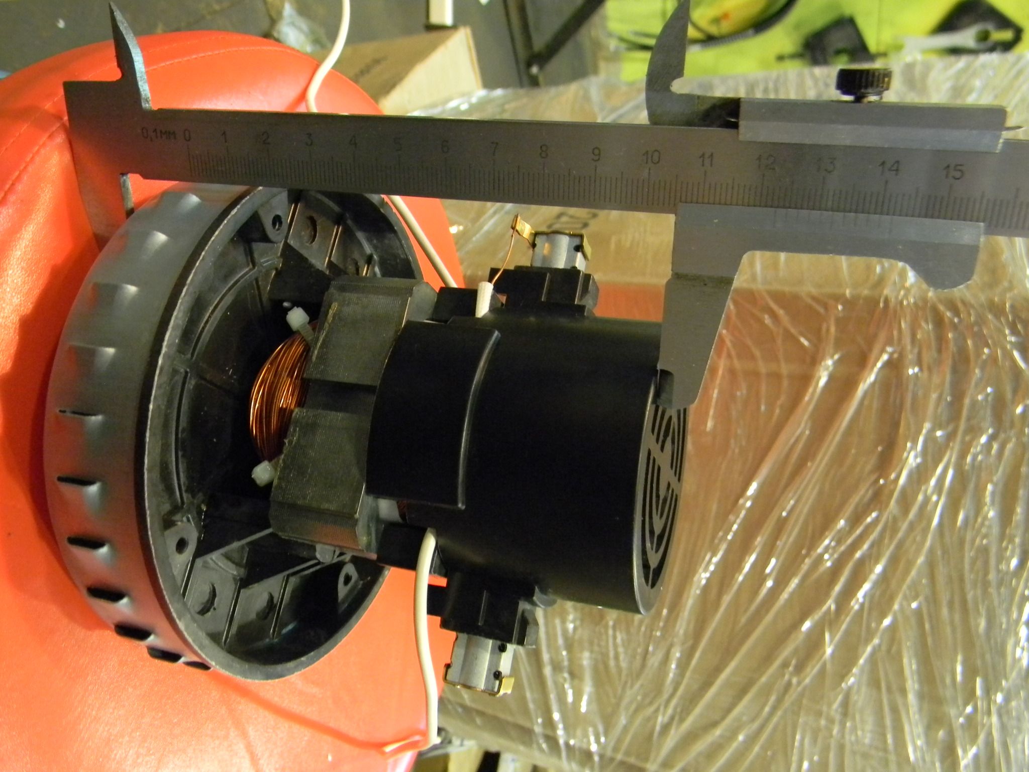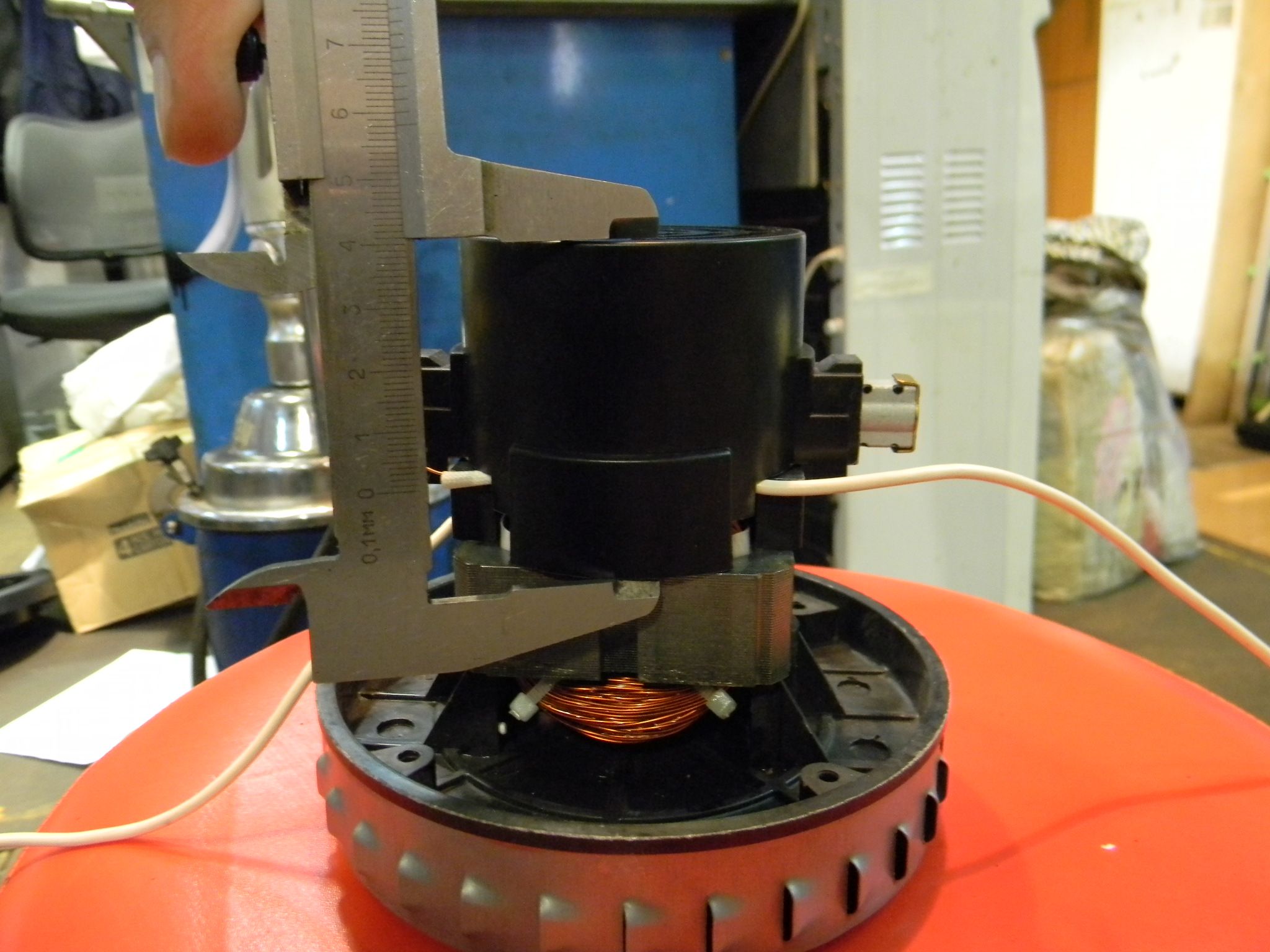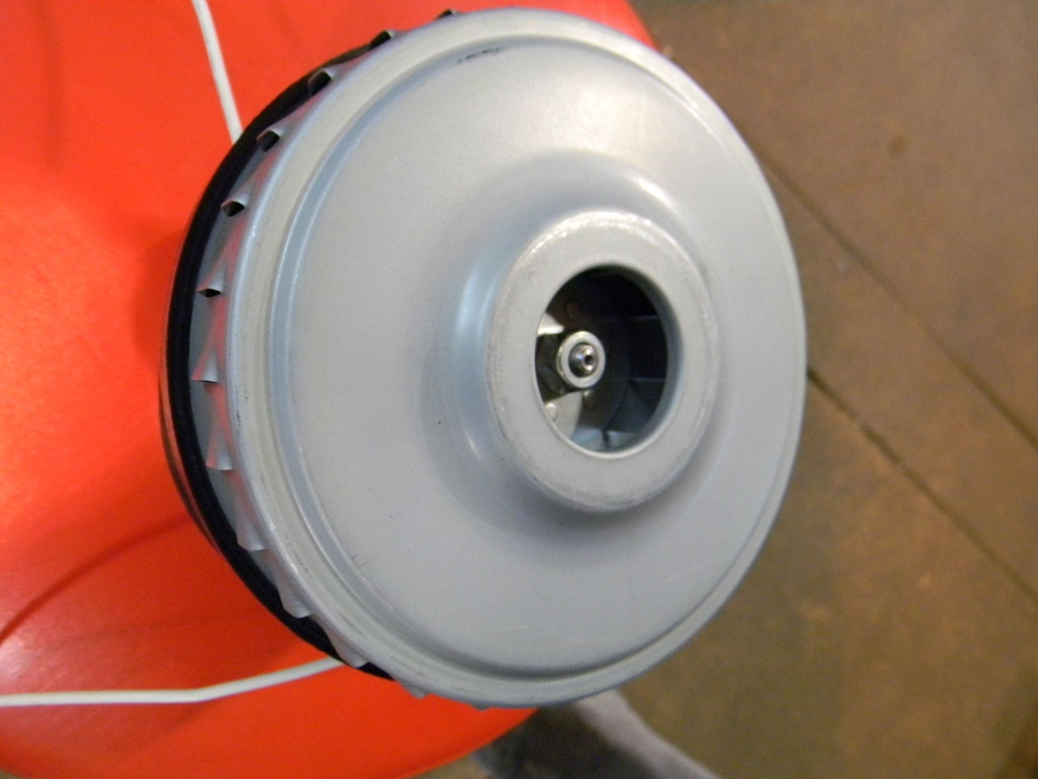 Материал - сталь, пластик, резина. Работает от сети 220в. При вращении создает разрежение воздуха для работы пылесоса. Используется на модели TC1923A-602000.