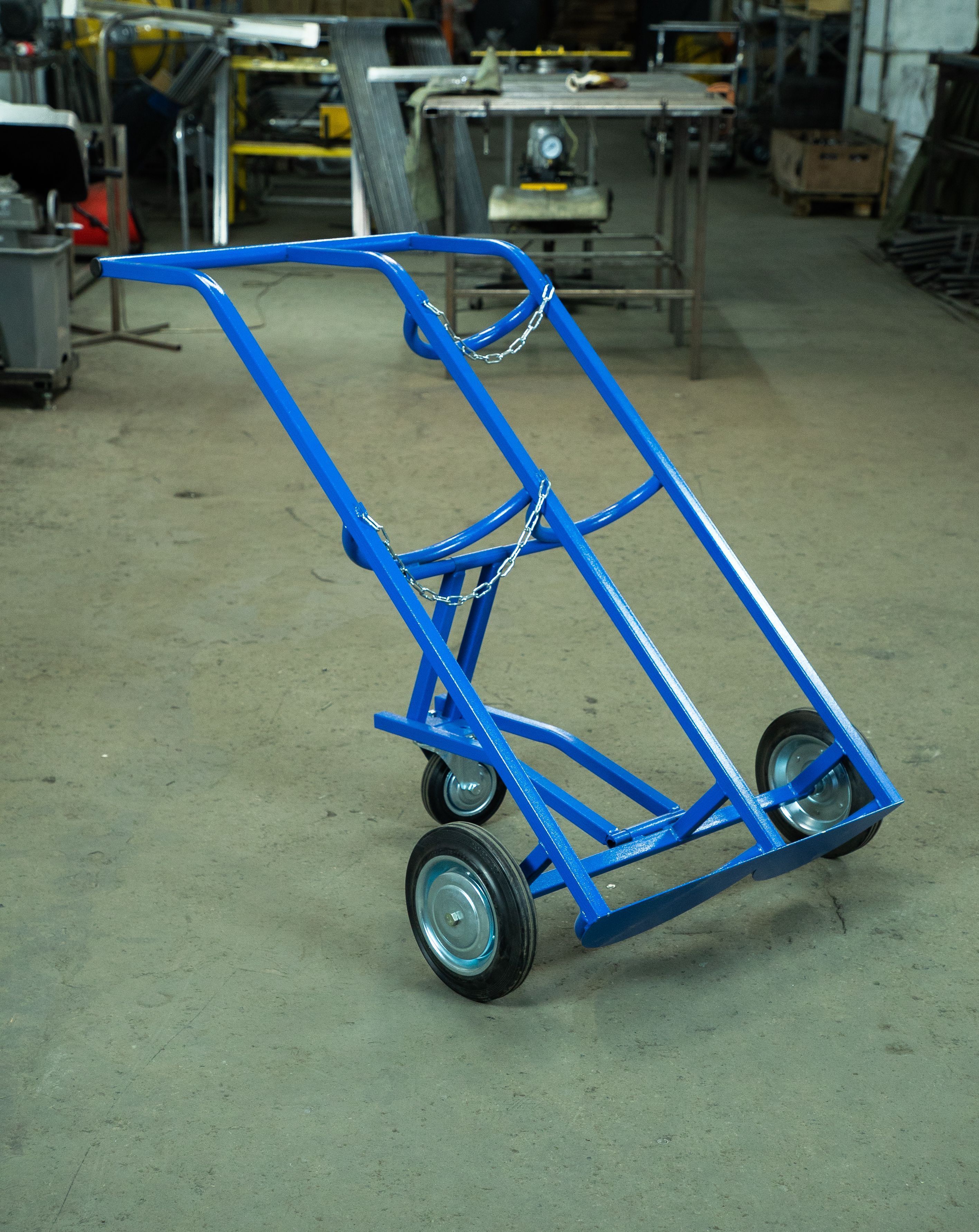Тележка грузовая TOR ТГК-П используется для одновременной перевозки 2 баллонов (кислород, пропан) объемом 40л и 50л. Тележка поставляется с комплектом литых резиновых колес. Преимущества тележки TOR ТКГ-П: - Грузоподъемность 260кг - Каркас сварен из стальных труб с толщиной стенки 1,5мм - Конструкция каркаса повторяет форму баллона, надежно фиксируя его при транспортировке Дополнительное крепление из металлической оцинкованной цепи - В комплекте поставки два литых колеса ⌀ 250мм и одно ⌀ 160мм - Литые колеса подходят для полов с загрязнением, обладают высокой стойкостью к порезам и повреждениям - Высокое качество сварных соединение - Антивандальное покрытие «Шагрень» устойчиво к сколам