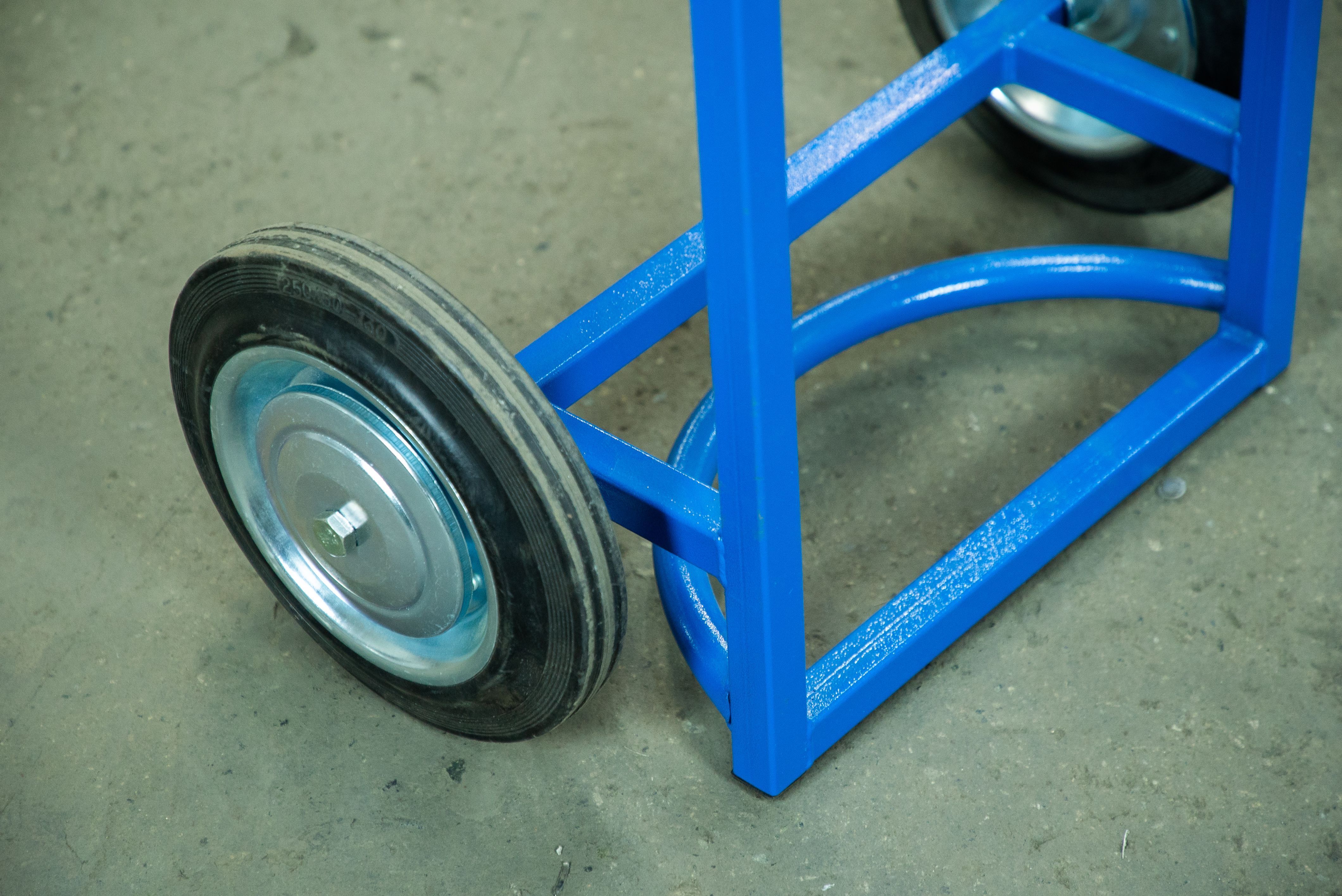 Грузовая тележка TOR ПР-1 используется для перевозки пропановых баллонов объёмом до 50л. Тележка поставляется с комплектом литых резиновых колес ⌀ 250мм. Преимущества тележки TOR ПР-1: - Грузоподъемность 260кг - Каркас сварен из стальных труб с толщиной стенки 1,5мм - В комплекте поставки два литых колеса ⌀ 250мм - Литые колеса подходят для полов с загрязнением, обладают высокой стойкостью к порезам и повреждениям - Высокое качество сварных соединение - Дополнительная фиксация баллона с помощью оцинкованной цепи - Высокое качество сварных соединение - Антивандальное покрытие «Шагрень» устойчиво к сколам