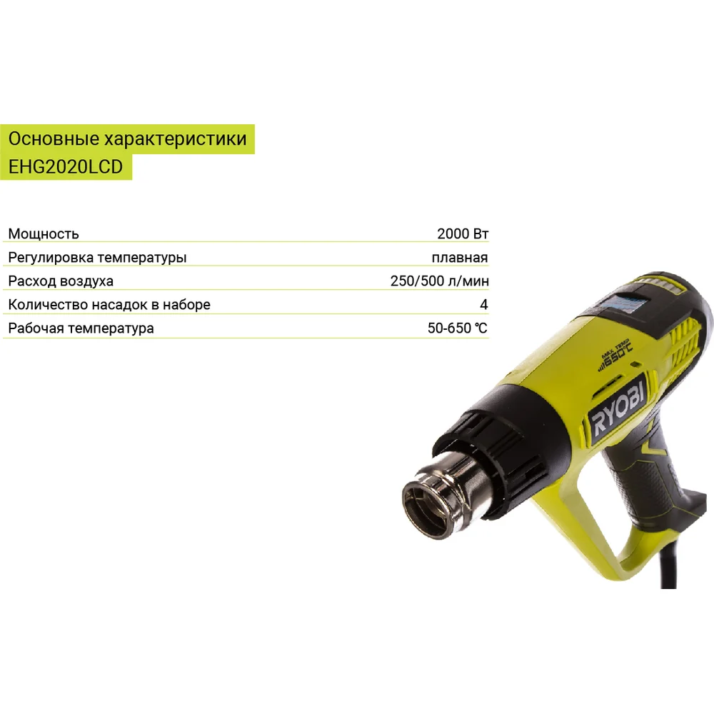 Термопистолет Ryobi EHG2020LCD 5133001730 благодаря нагретому воздушному потоку позволяет решать широкий круг задач, таких как размягчение клеев, удаление старой краски или подсушивание новой. Регулировка температуры позволяет решать различные задачи. Предусмотрен ЖК-индикатор температуры нагрева. Съемный защитный кожух нагревательного элемента облегчает замену насадок.