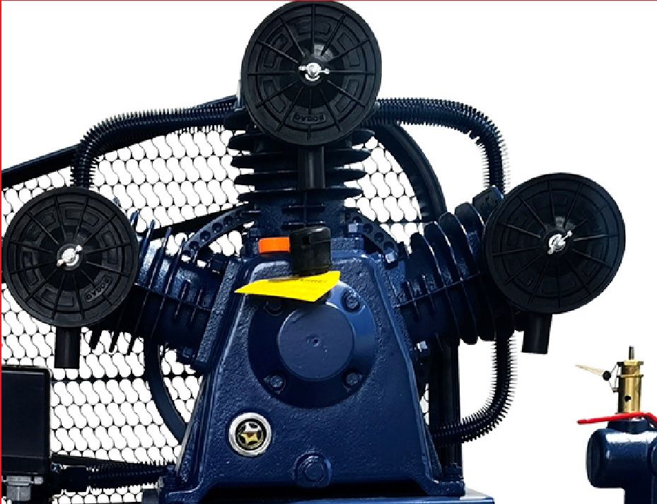 Материал - сталь, резина, пластик. При вращении шкива создает давление, которое подается в ресивер. Используется на модели TK-200-4.