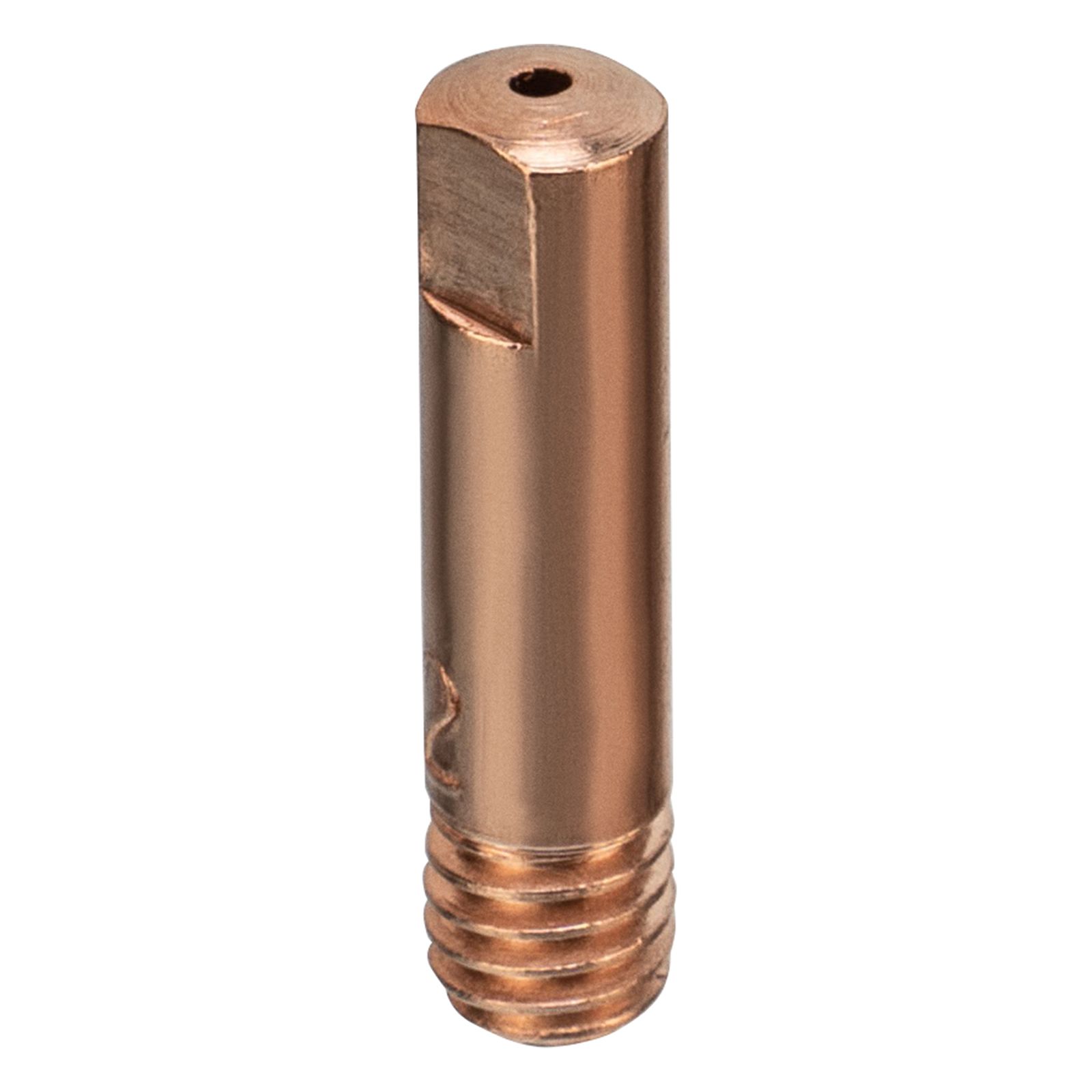 Токосъемный наконечник Denzel 93649 из меди E-CU, с резьбовым соединением M6х24, 20 шт. в упаковке, совместим со сварочными горелками типа 15 (в том числе с моделью Denzel 93641) и предназначен для подвода тока к проволоке диаметром 1,2 мм на выходе в область сварки. Используется для замены изношенной детали и позволяет быстро восстановить работоспособность горелки.