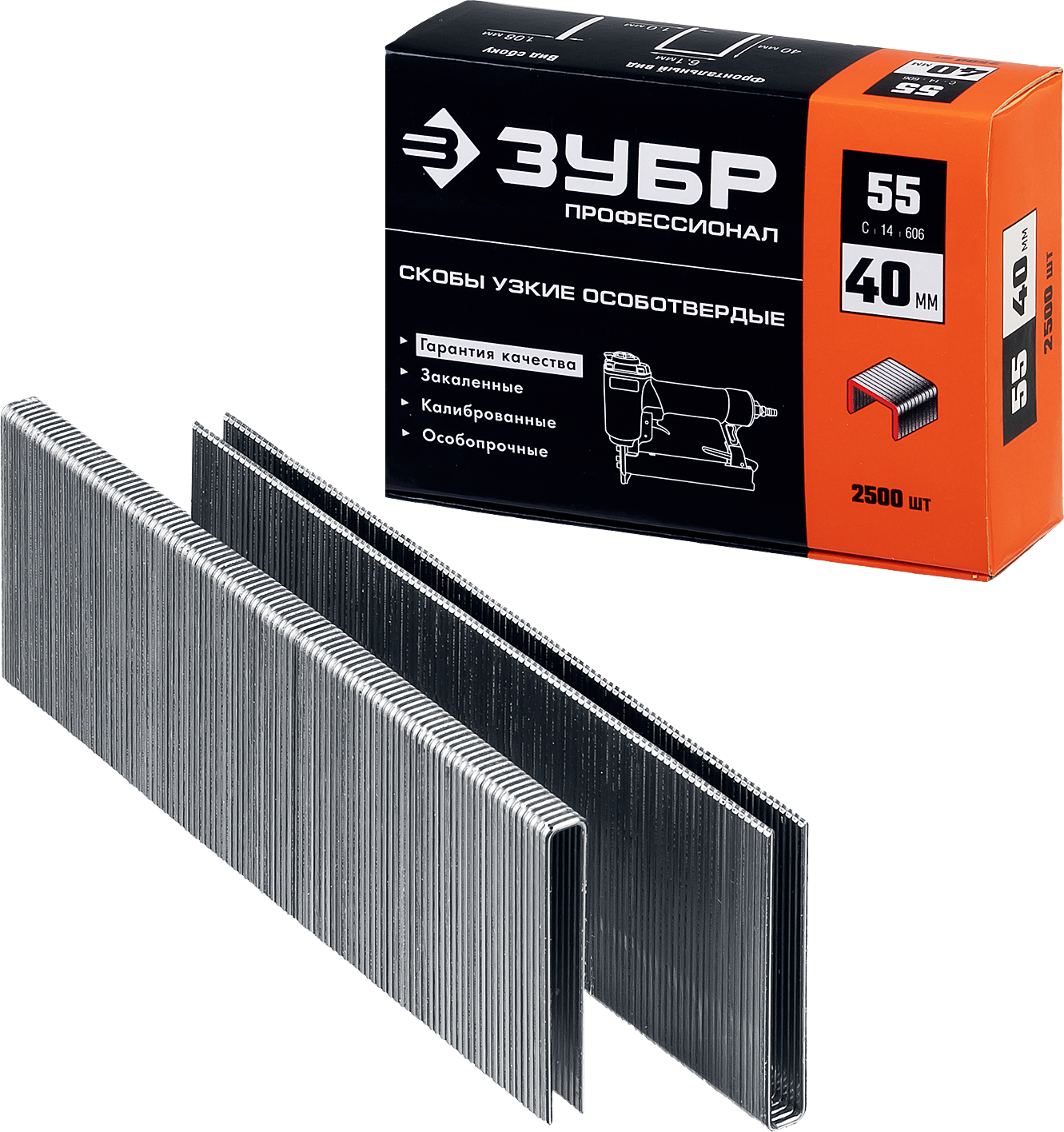Тонкие широкие скобы для степлера ЗУБР тип 55 40 мм 2500 шт. 31855-40