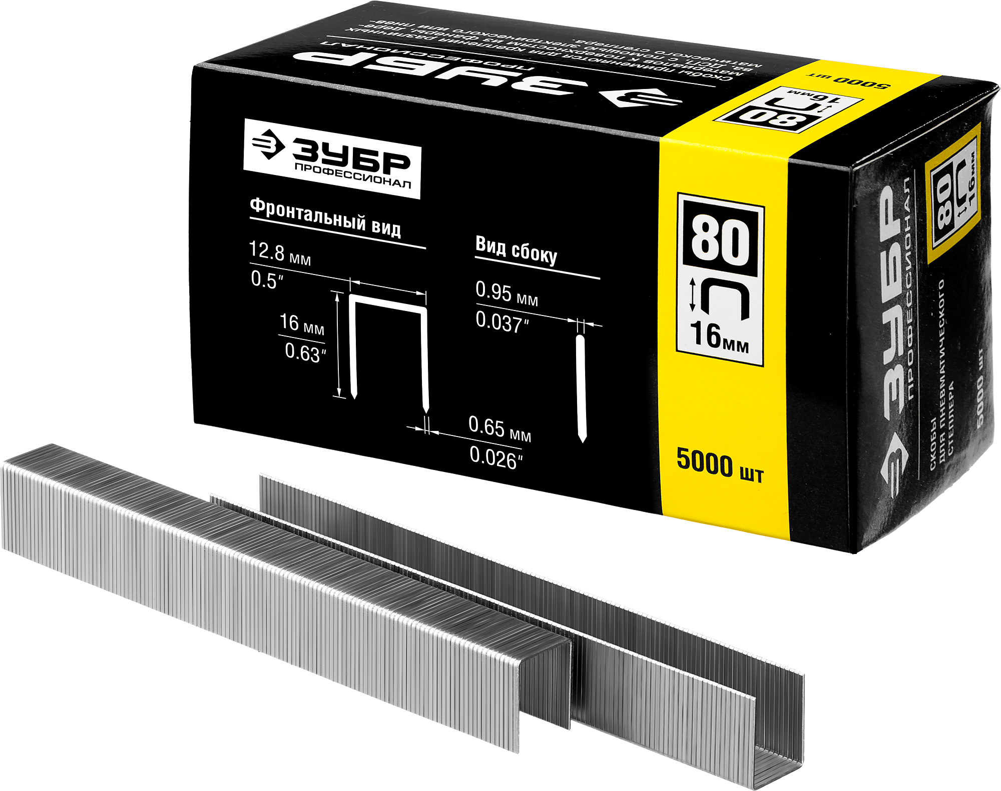 Тонкие широкие скобы для степлера ЗУБР тип 80 16 мм 5000 шт. 31880-16
