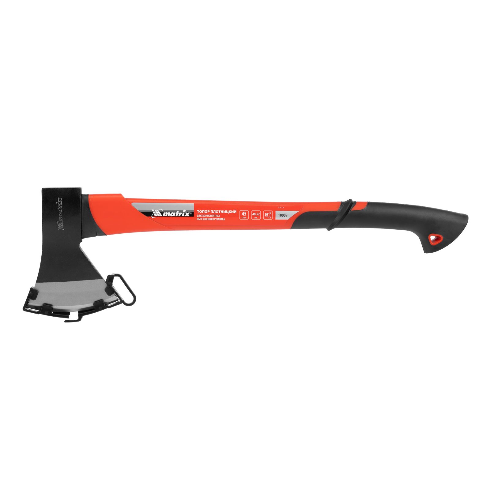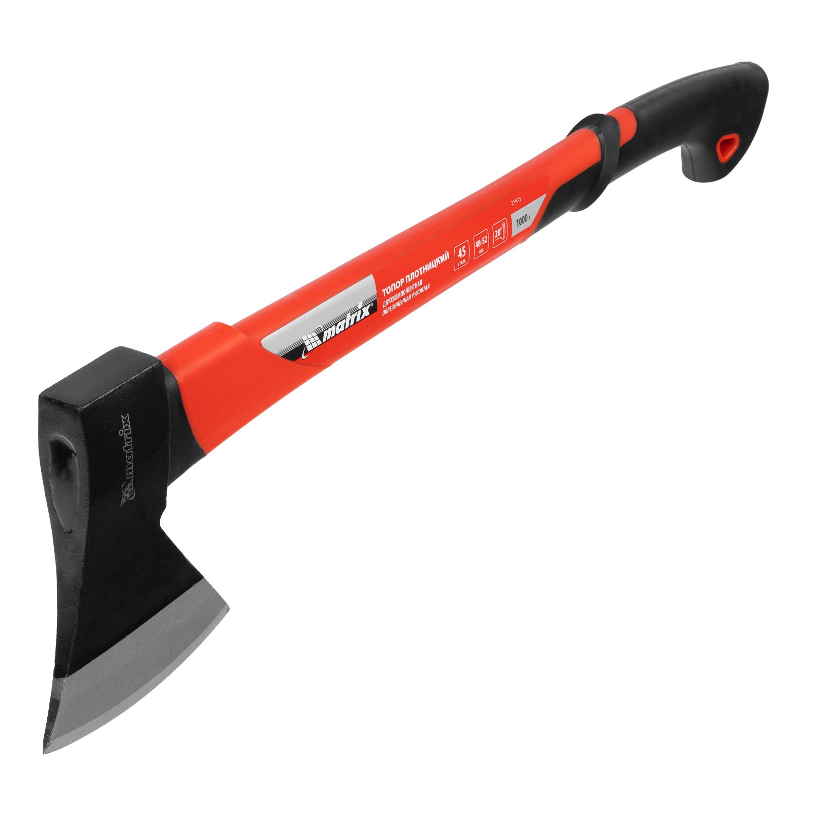 Топор Matrix 21415 длиной 610 мм, с рабочей частью весом 1000 г и эргономичной фибергласовой рукояткой, используется для колки дров, заострения колышков, вырубки кустов, рубки сучьев, а также выполнения других работ. Полукруглое лезвие упрощает работу. Удлиненная рукоятка позволяет наносить более сильные удары, что облегчает рубку больших дров, полен и валку небольших деревьев. Инструмент используется для решения бытовых задач.