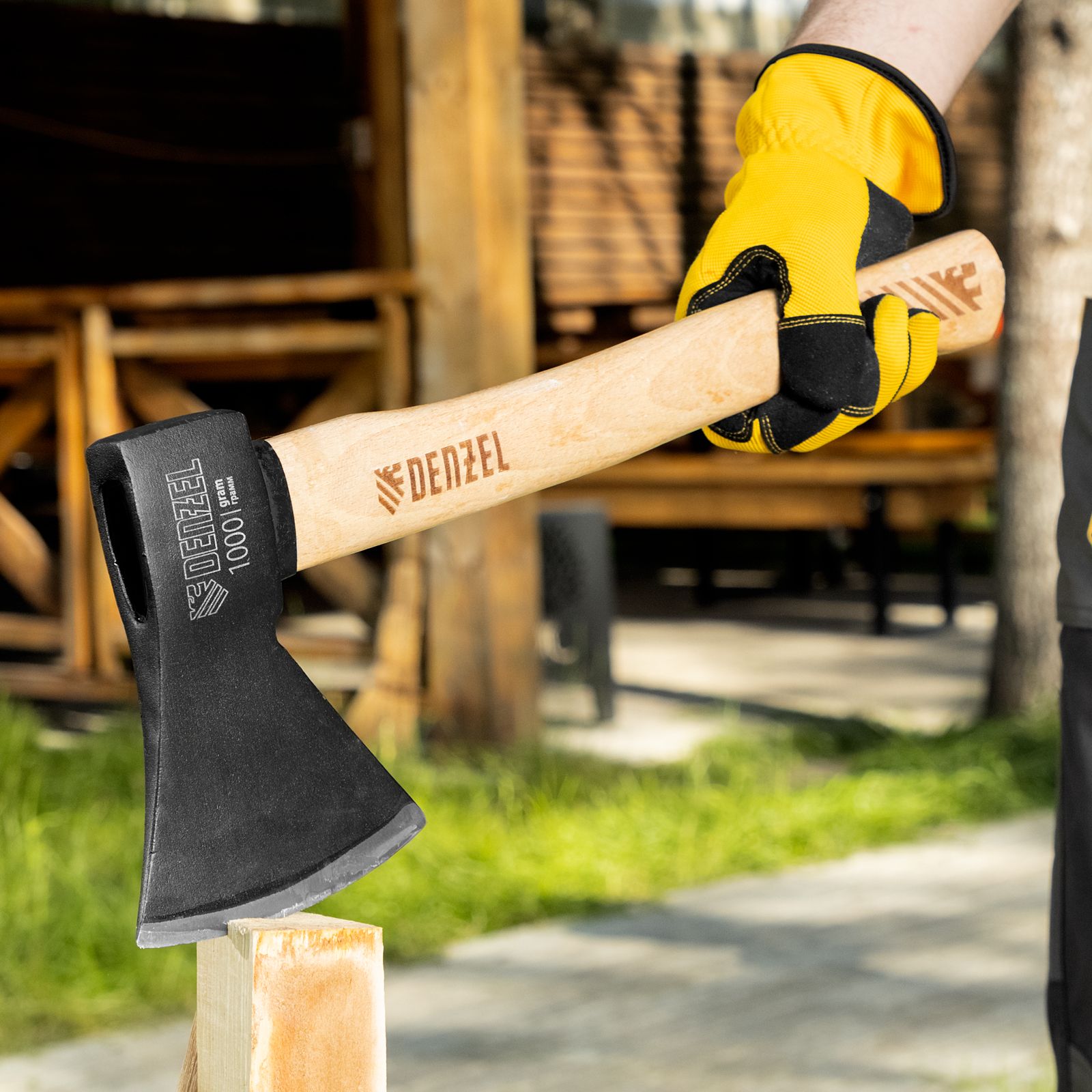 - Стойкость к рассыханию и воздействию влаги — топорище покрыто защитным лаком.