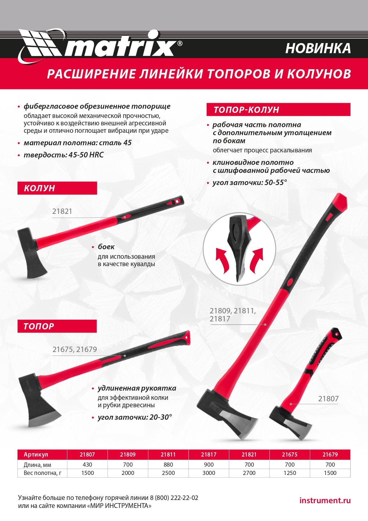 - Долговечность — фибергласовое топорище устойчиво к перепадам температур, а также к воздействию влаги и ультрафиолета.