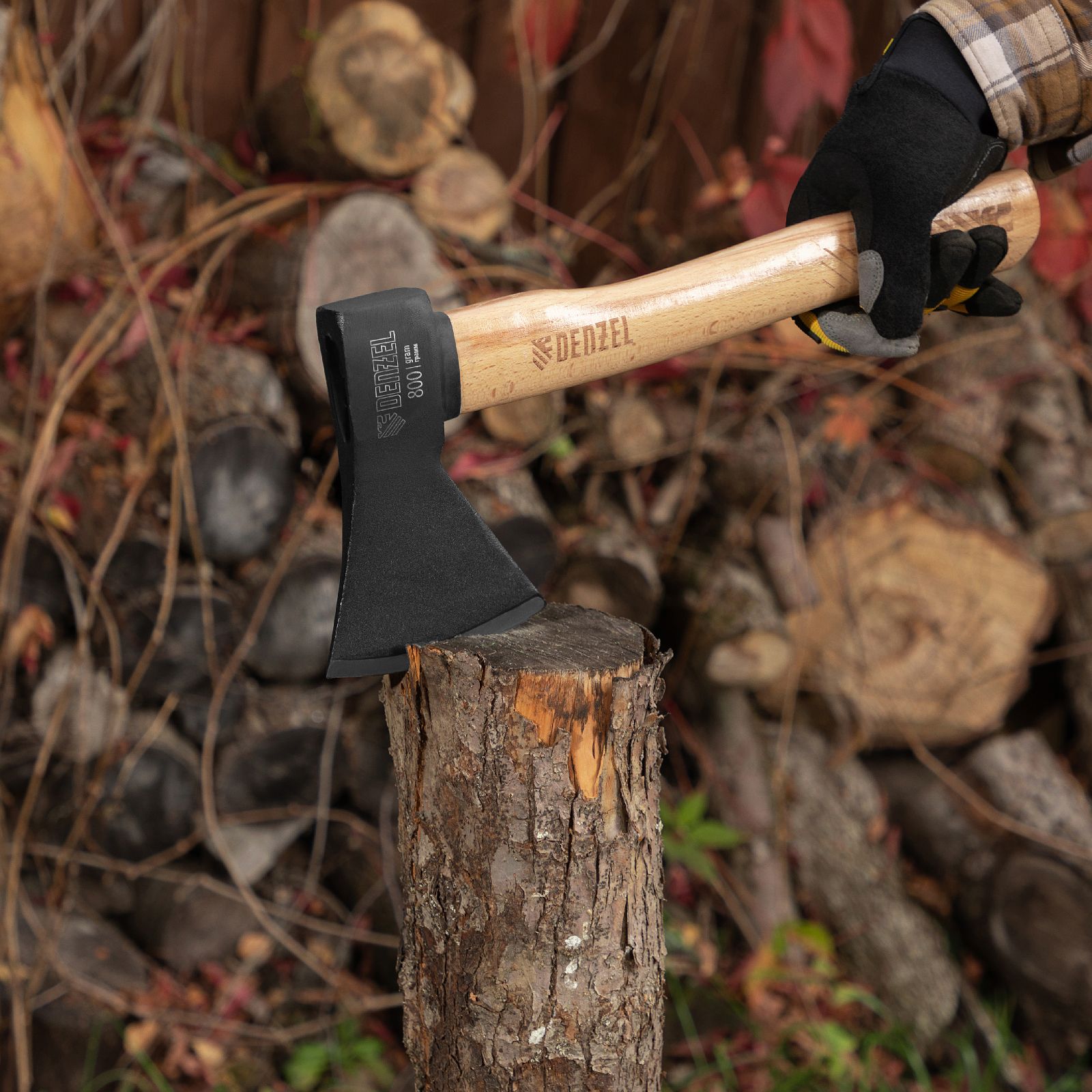 - Стойкость к рассыханию и воздействию влаги — топорище покрыто защитным лаком.