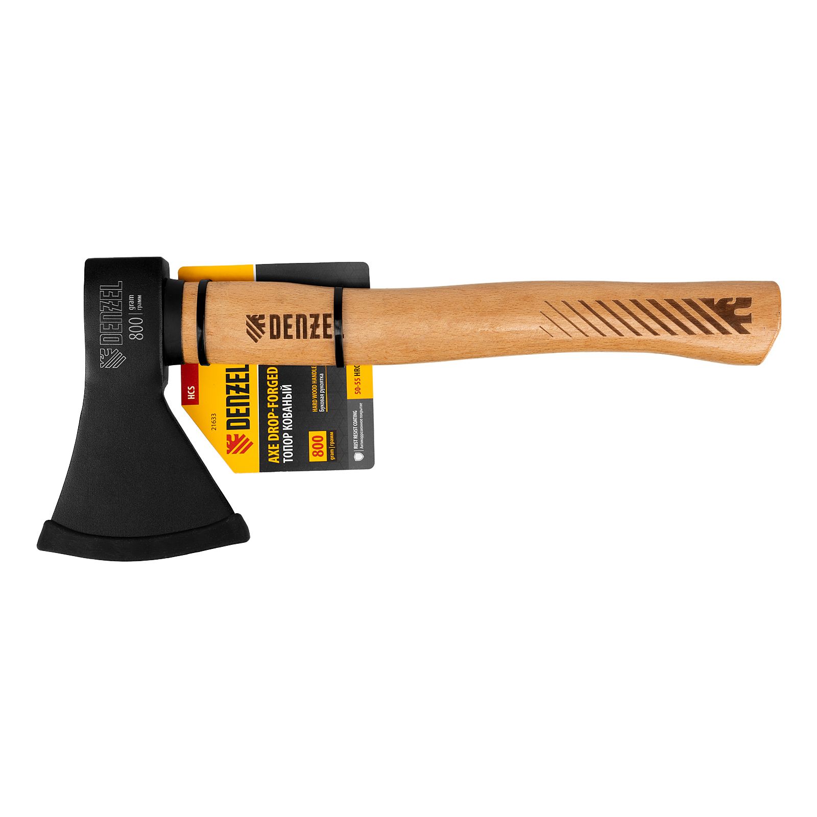 - Устойчивость к нагрузкам — голова топора изготовлена из высокоуглеродистой стали и закалена до твердости 50-55 HRC.