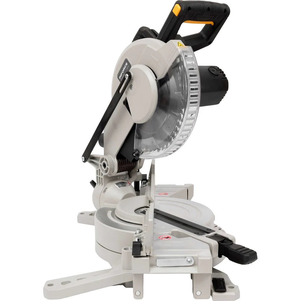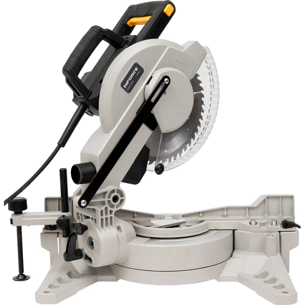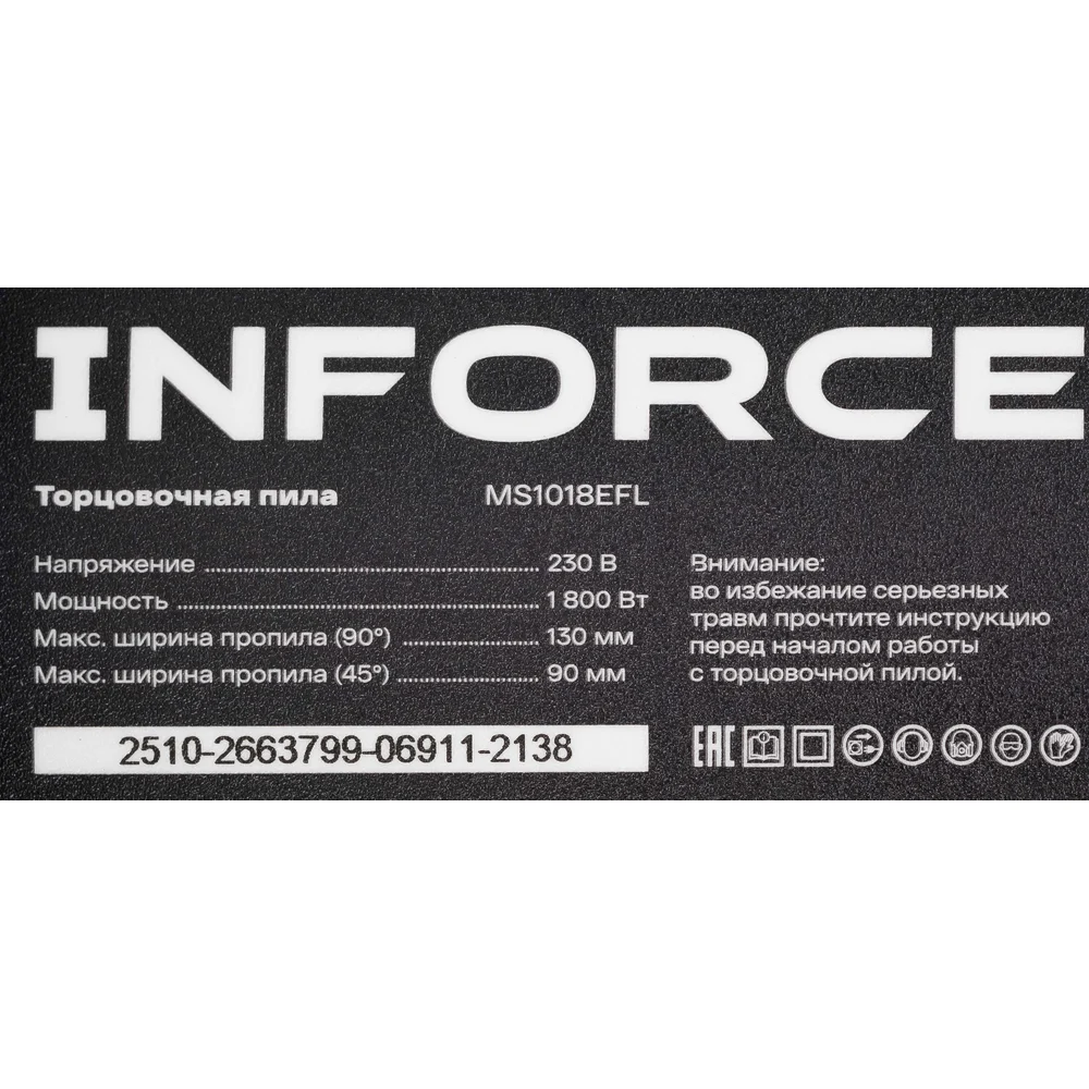Inforce MS1018EFL - это торцовочная пила с высокой точностью углов реза. Подсветка, лазер и регулируемый стол обеспечивают высокую точность. Есть функция электронного тормоза. Подходит для плинтусов, наличников и других столярных работ. Компактная и надежная. Односторонний наклон. Преимущество электронного тормоза: мгновенная остановка диска после выключения. Вместо 10-20 секунд свободного вращения диск останавливается за 2-5 секунд. Это резко снижает риск получения травмы при случайном прикосновении к диску после отключения питания, при смене диска или уборке стружки.