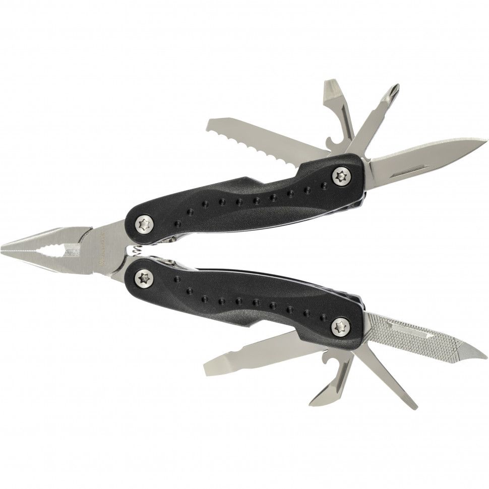 Трансформер Matrix 17620 — мультитул компактного размера, длиной 105 мм, с авторазжимом, выполняющий 12 функций и поставляющийся с чехлом. В него входят нож и пила для разрезания картона и других материалов, длинногубцы с захватом для полукруглых предметов и кусачками для перекусывания мягкой проволоки, отвертки для работы с резьбовыми соединениями, пилка для ногтей, а также открывалки для открывания бутылок и консервных банок. Инструмент можно использовать в гараже, также он пригодится дома, на даче, в походе и поездке, на охоте или рыбалке.