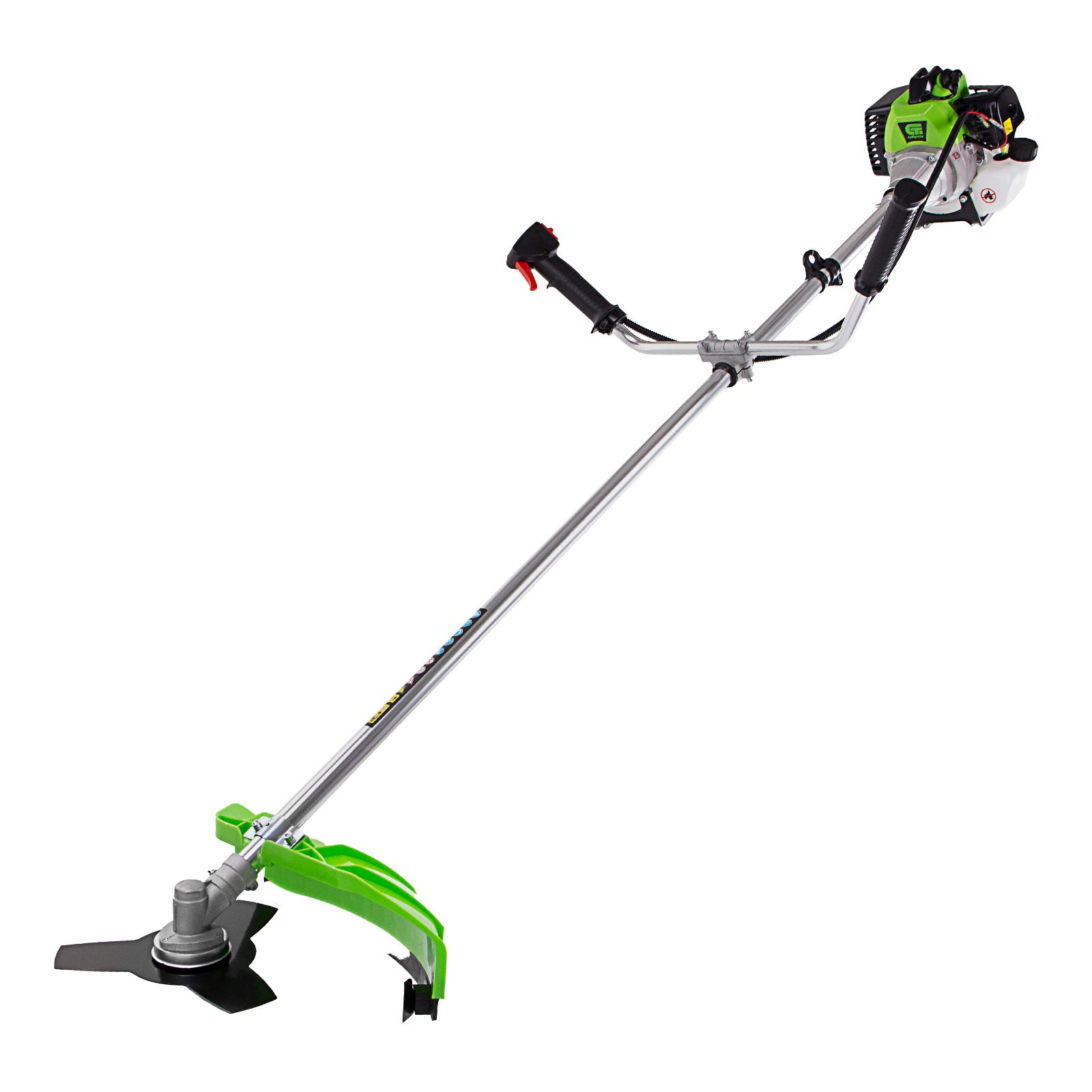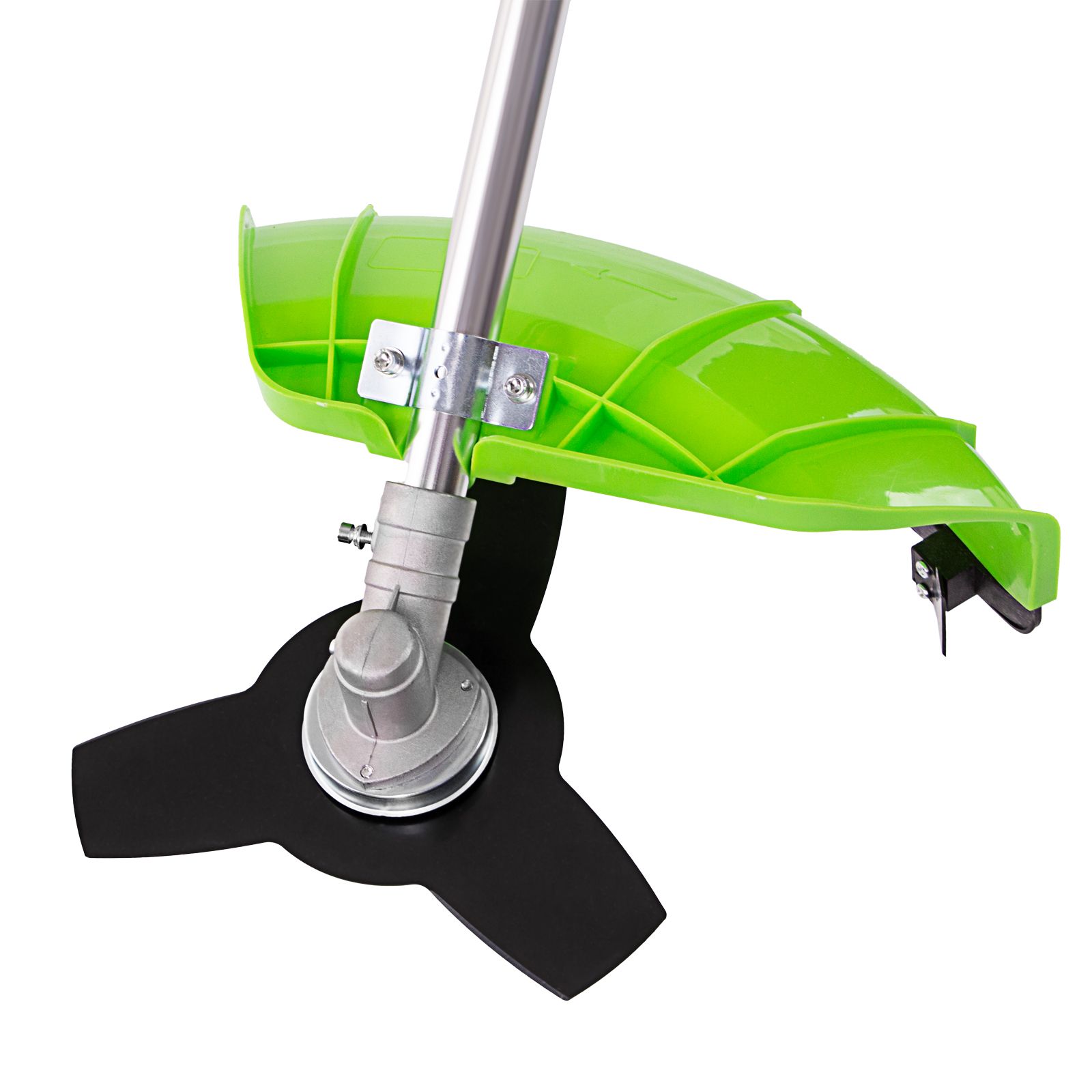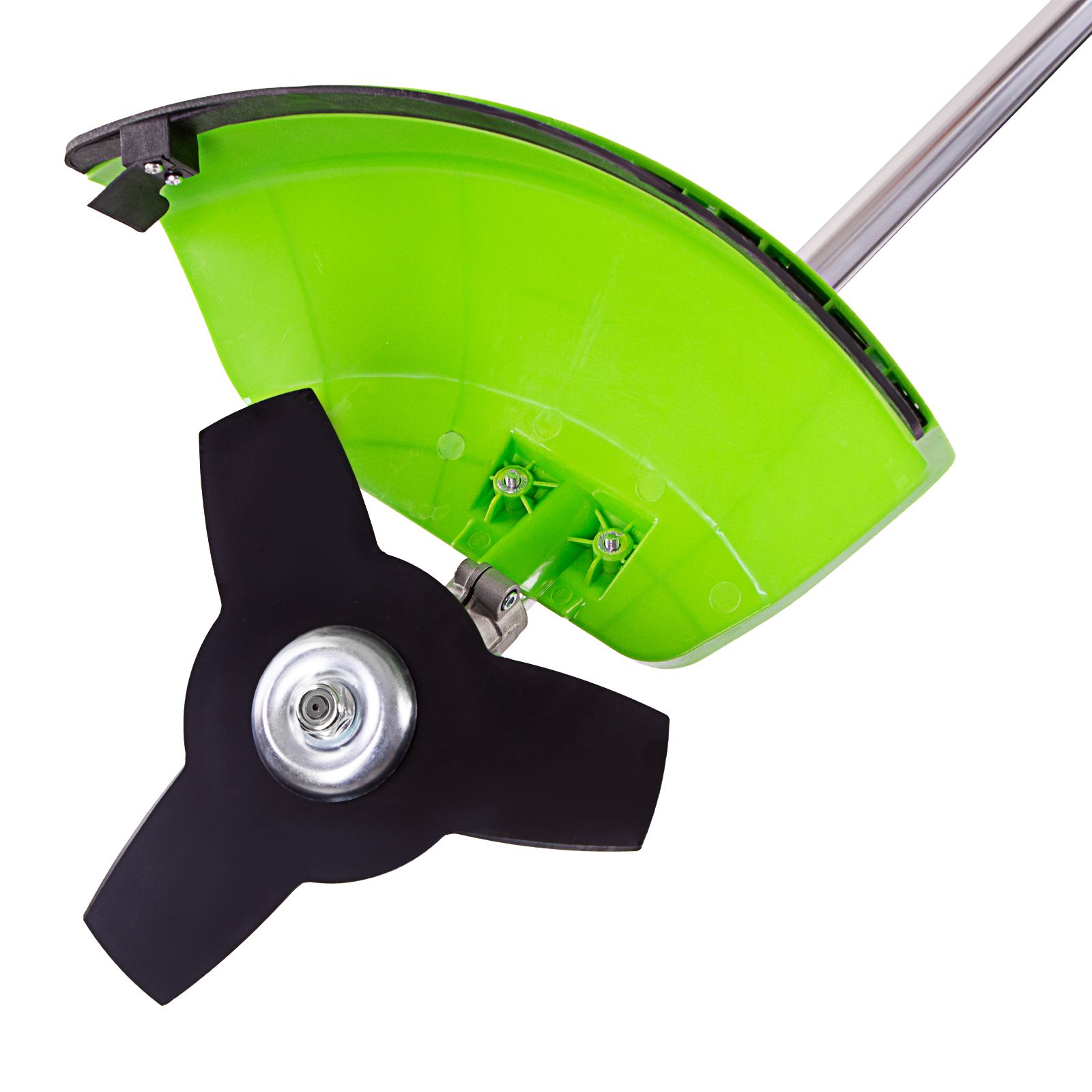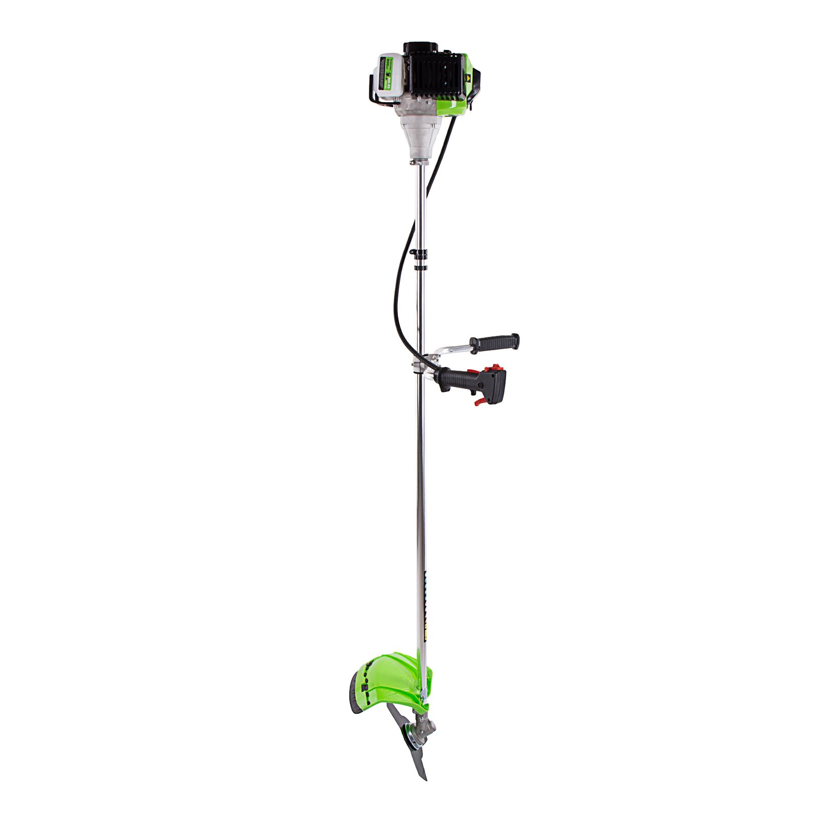 - Защита от летящей травы и веток — на штанге надежно закреплен прочный пластиковый кожух.