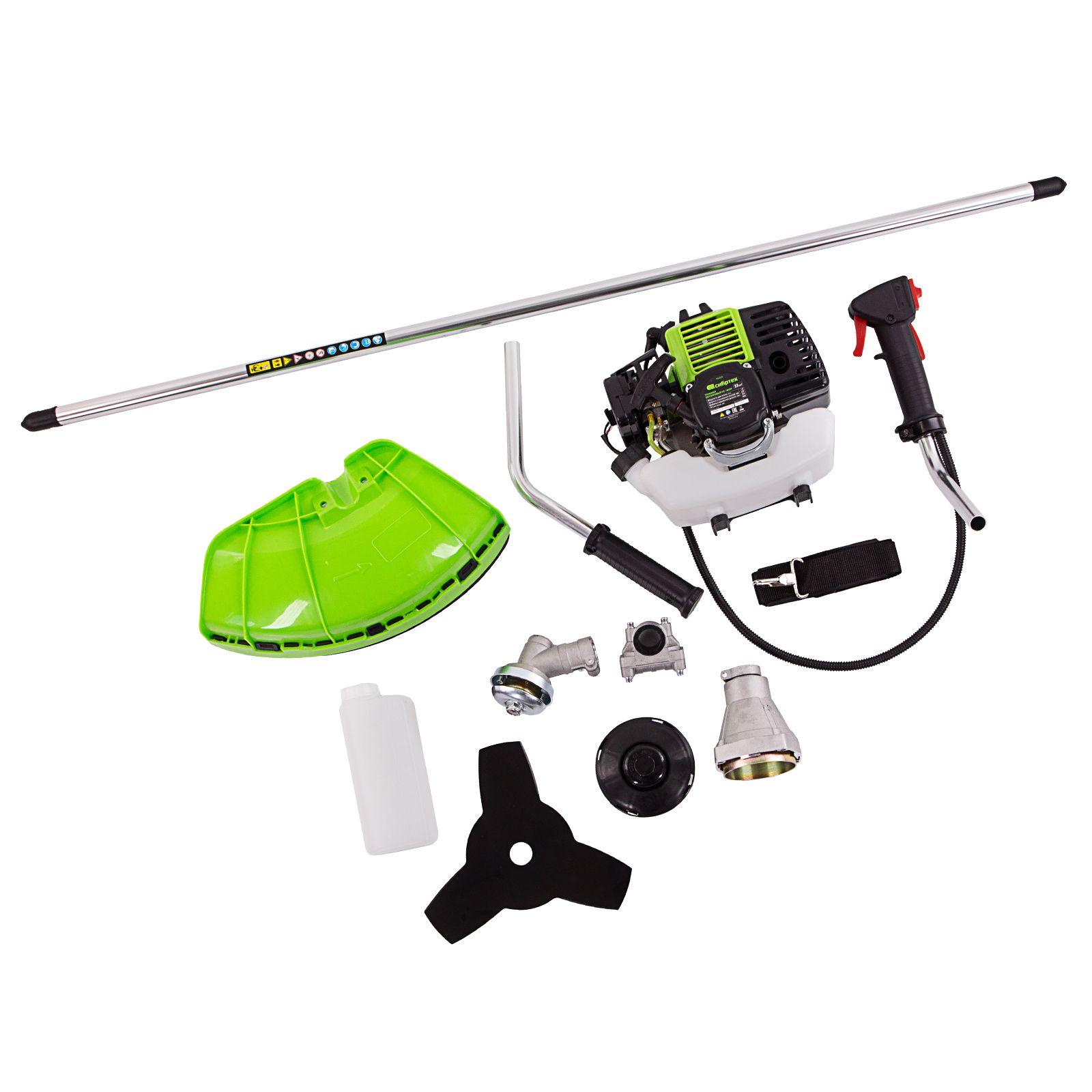 - Защита от летящей травы и веток — на штанге надежно закреплен прочный пластиковый кожух.
